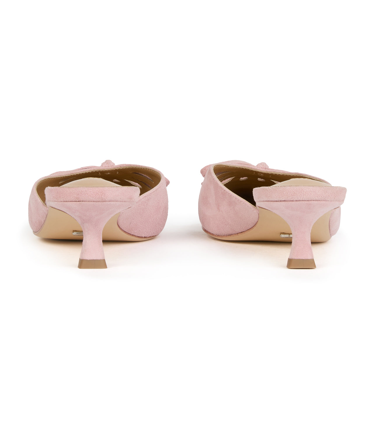 Introduce a touch of whimsical elegance to your wardrobe with the Lavinia Blossom Heels. Crafted from soft suede, these beautiful pointed-toe mules are anything but ordinary. The intricate cut-out and kitten heel detail strike a perfect balance, making them a comfortable yet dressy slip-on for sophisticated charm from day to night.