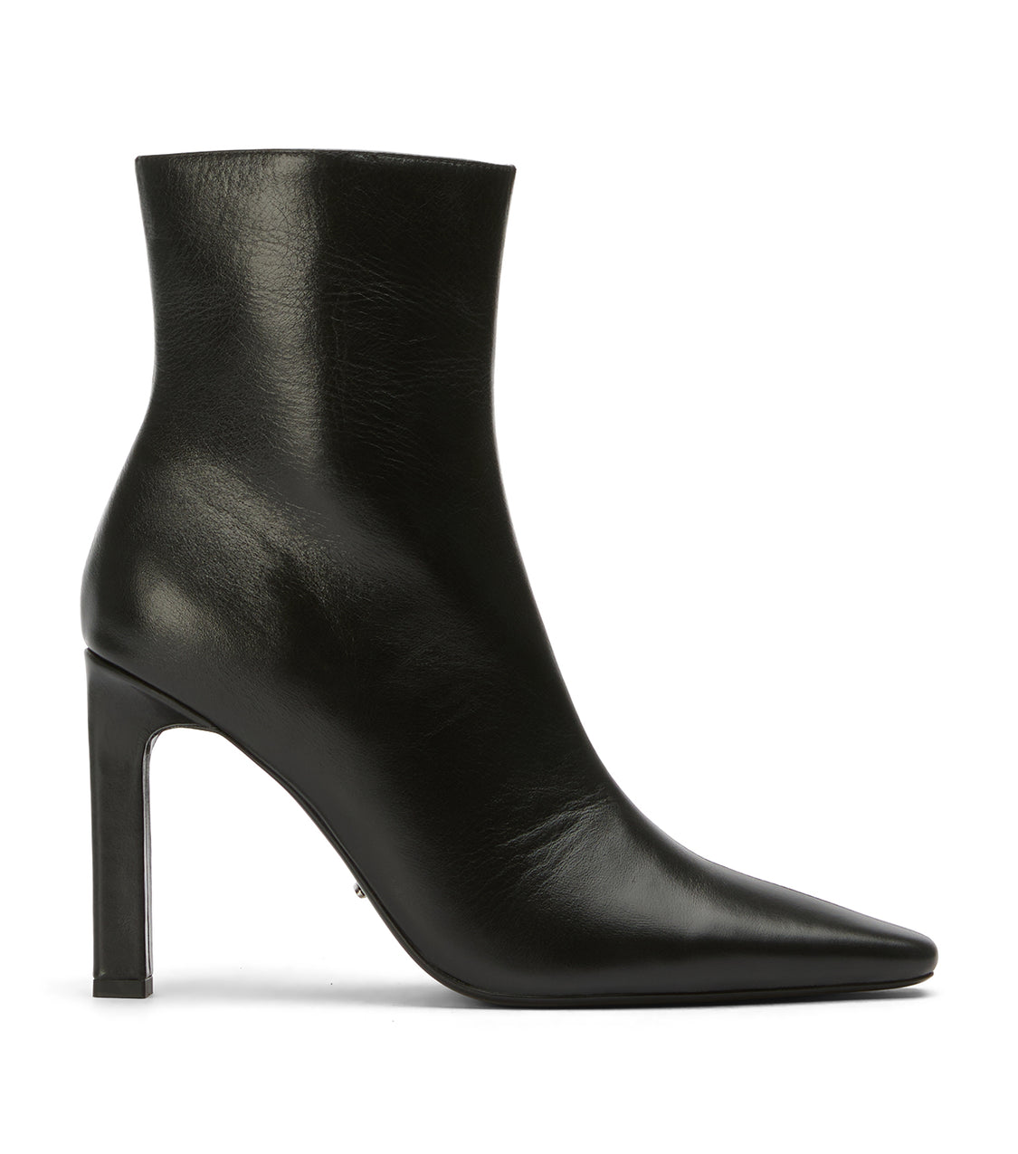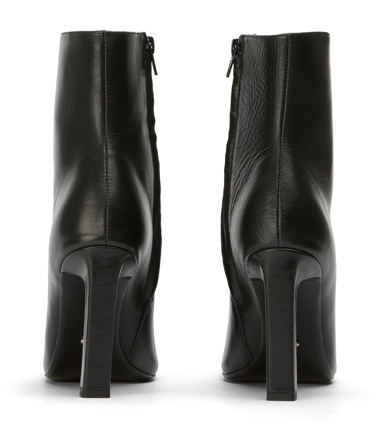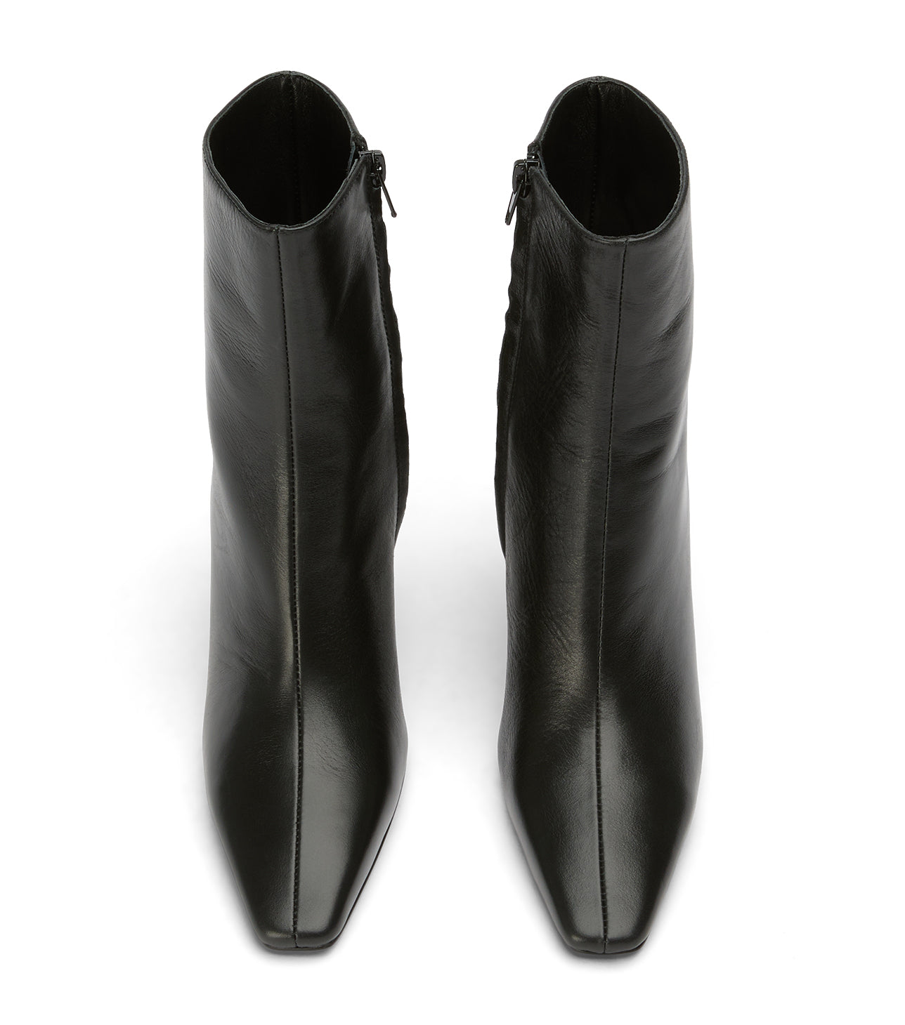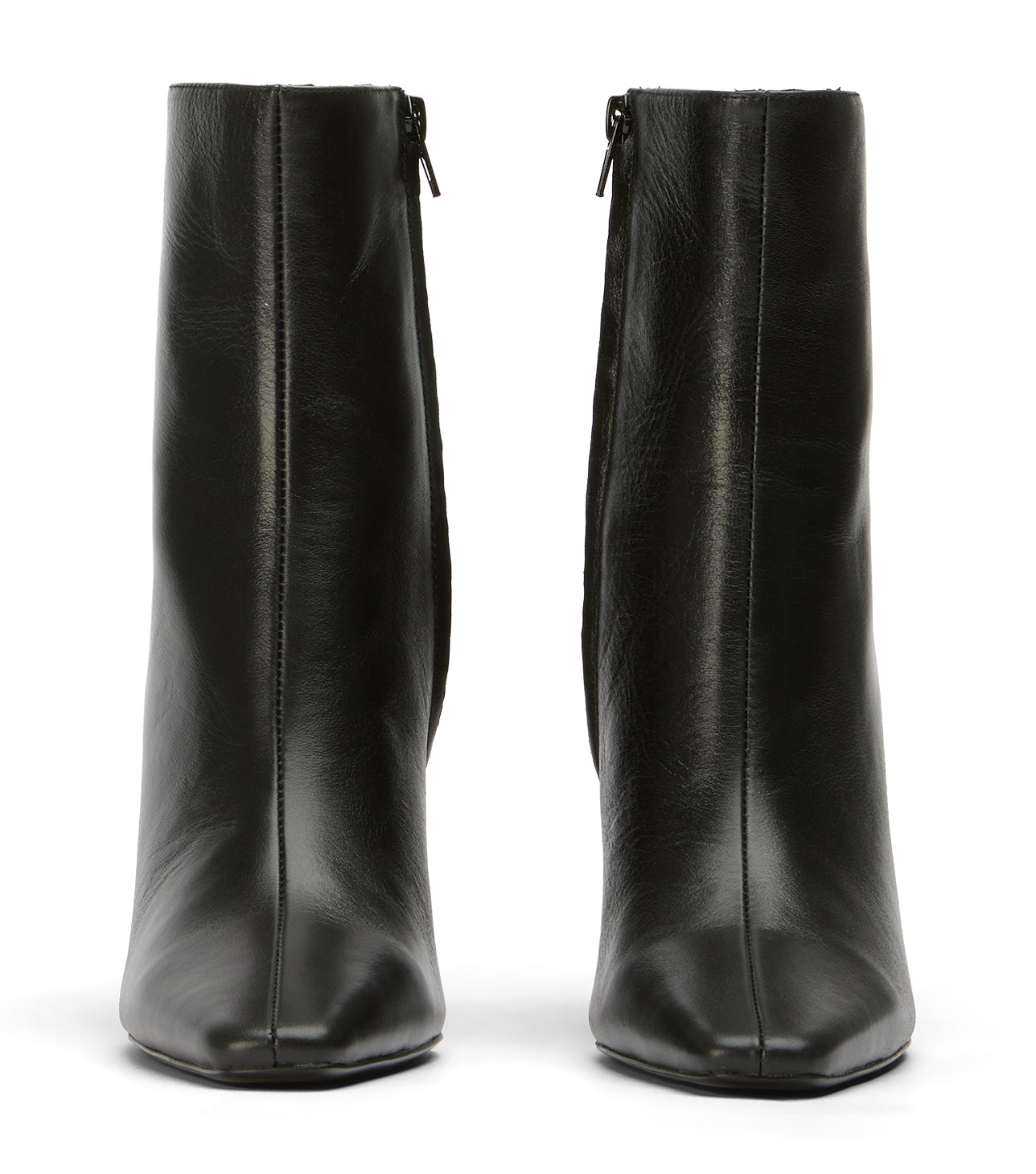 Prance is a modern black ankle boot designed with a clean square toe and a structured block heel for effortless, everyday polish. This sleek ankle boot offers a contemporary silhouette that pairs seamlessly with tailoring, denim, and elevated off-duty looks.