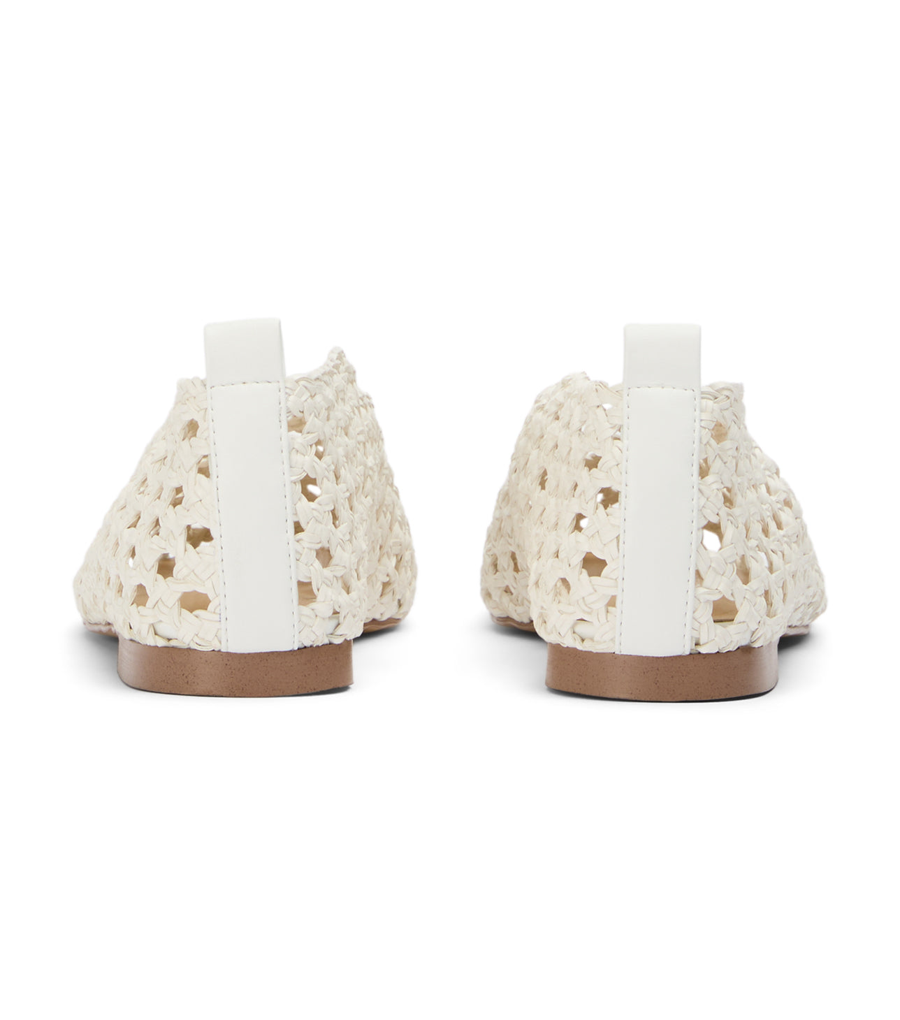 Cheeky is a refined ballet flat featuring an intricate open-weave design that creates a sculptural lattice effect across the upper. Finished in classic white, this lightweight flat blends modern texture with timeless appeal, perfect for effortless everyday styling and warm-weather dressing.