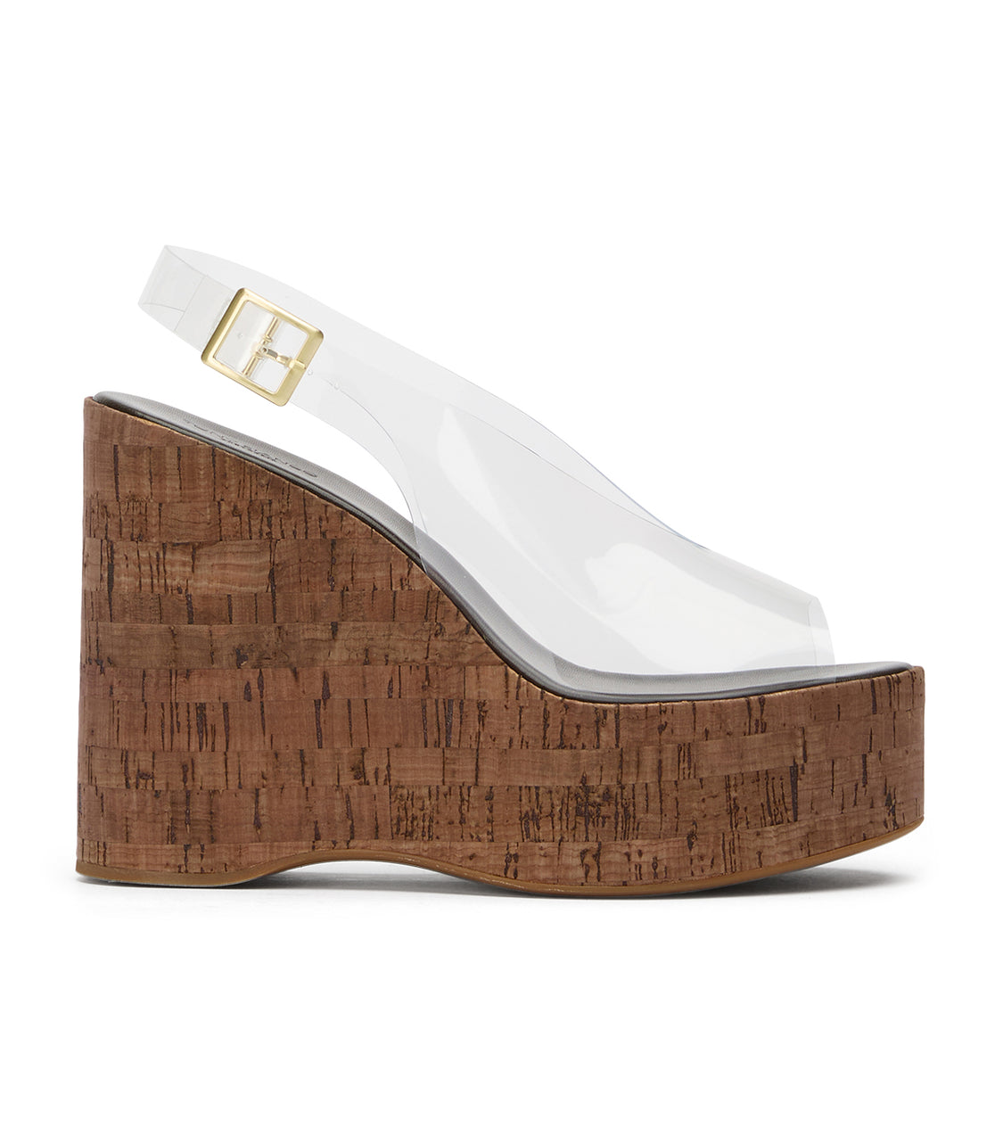 A 2000s-inspired clear vinylite wedge with an open toe and sleek slingback strap. Valerie brings statement height and a streamlined silhouette, perfect for making an impression from day to night.