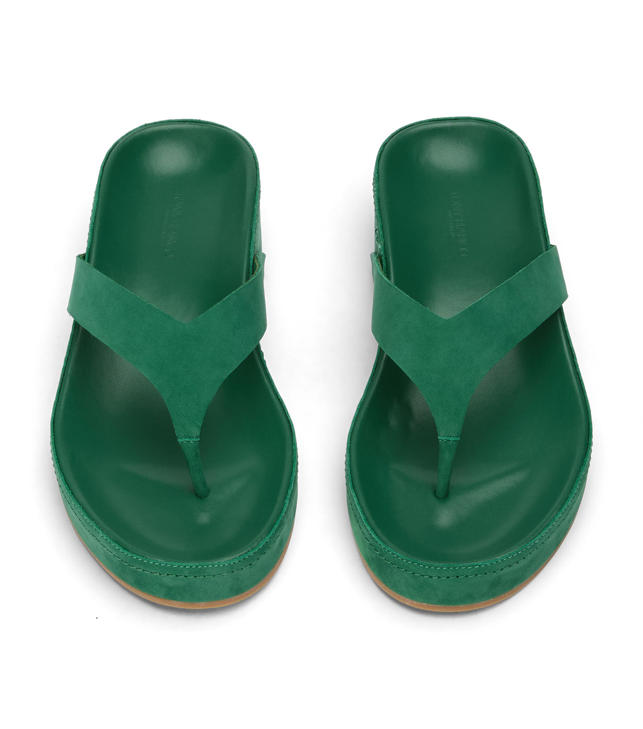 The Blaire platform sandal in jade green is the perfect finishing touch for your warm-weather wardrobe. This versatile tan flip-flop will effortlessly elevate your look, taking you from a relaxing day at the beach to a fun night out with friends. It's the ultimate everyday essential for comfort and style.