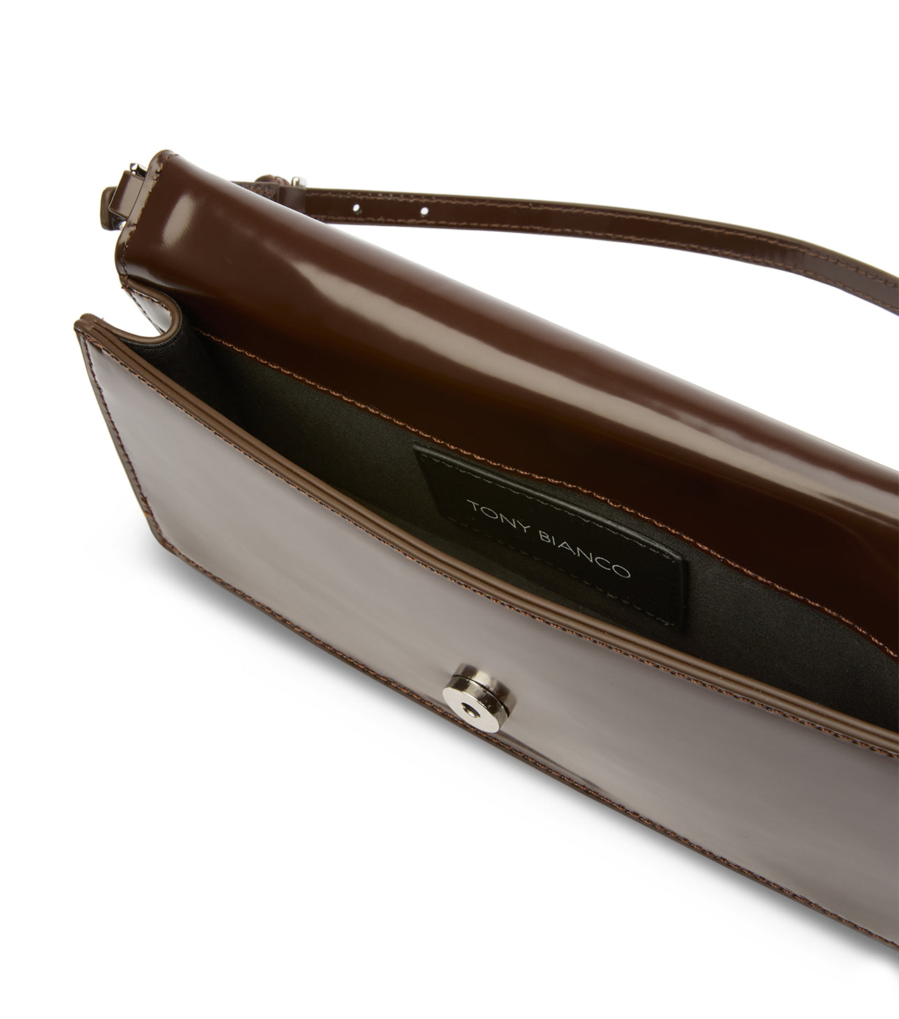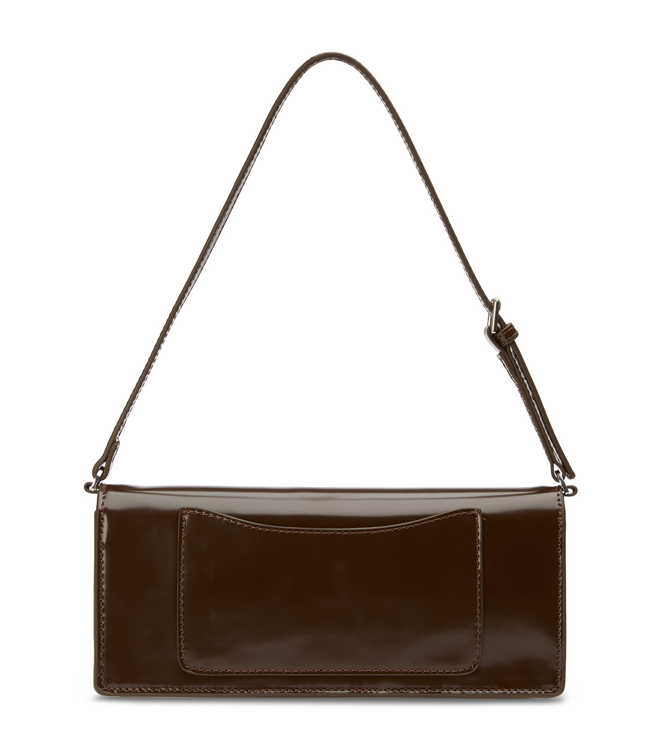 Lizzie bag is a sleek choc smooth shoulder bag designed with a minimalist flap silhouette and refined everyday elegance. Perfect for modern styling, this women’s designer-inspired handbag transitions effortlessly from day to night. A timeless wardrobe essential for polished, elevated looks.