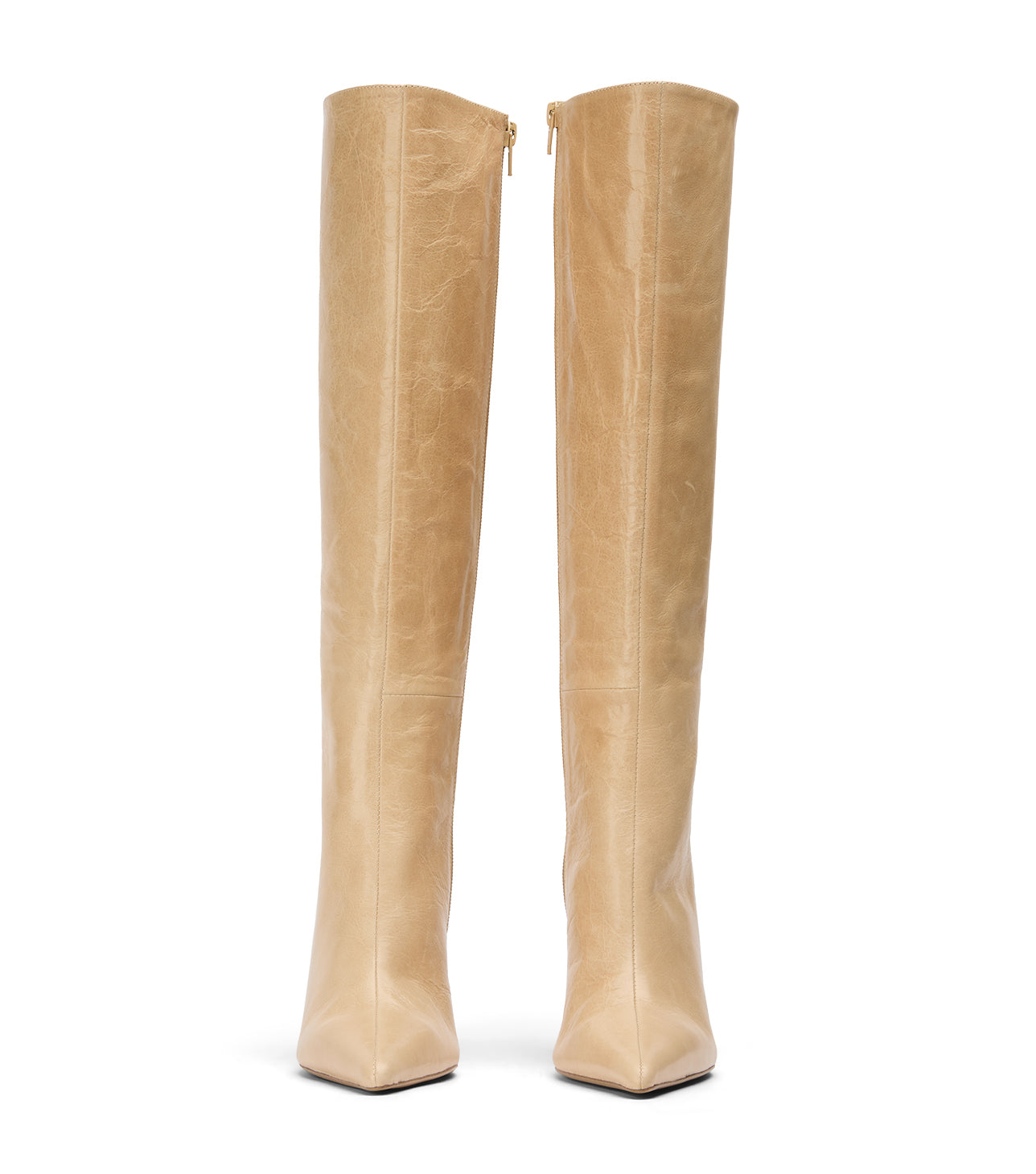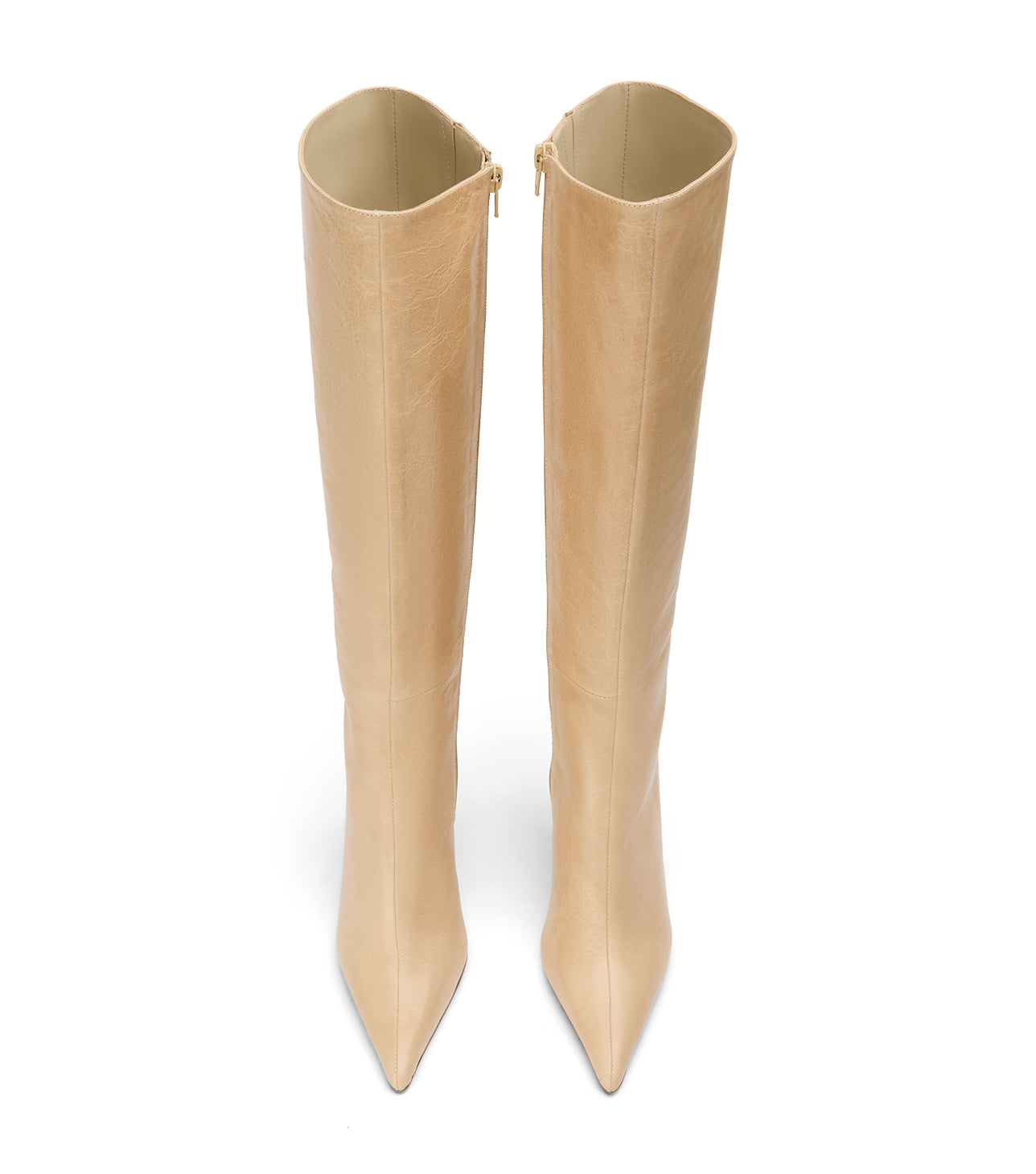 Make a major style investment this season with the essential Naxos knee-high boot. Commanding attention, this calf boot is a must-have piece, shaped from sleek vanilla vintage leather and featuring a confident pointed toe and slender stiletto heel. The streamlined fit is secured by a convenient full length zip, ensuring a smooth silhouette and making this your go-to boot for adding polish to any look.