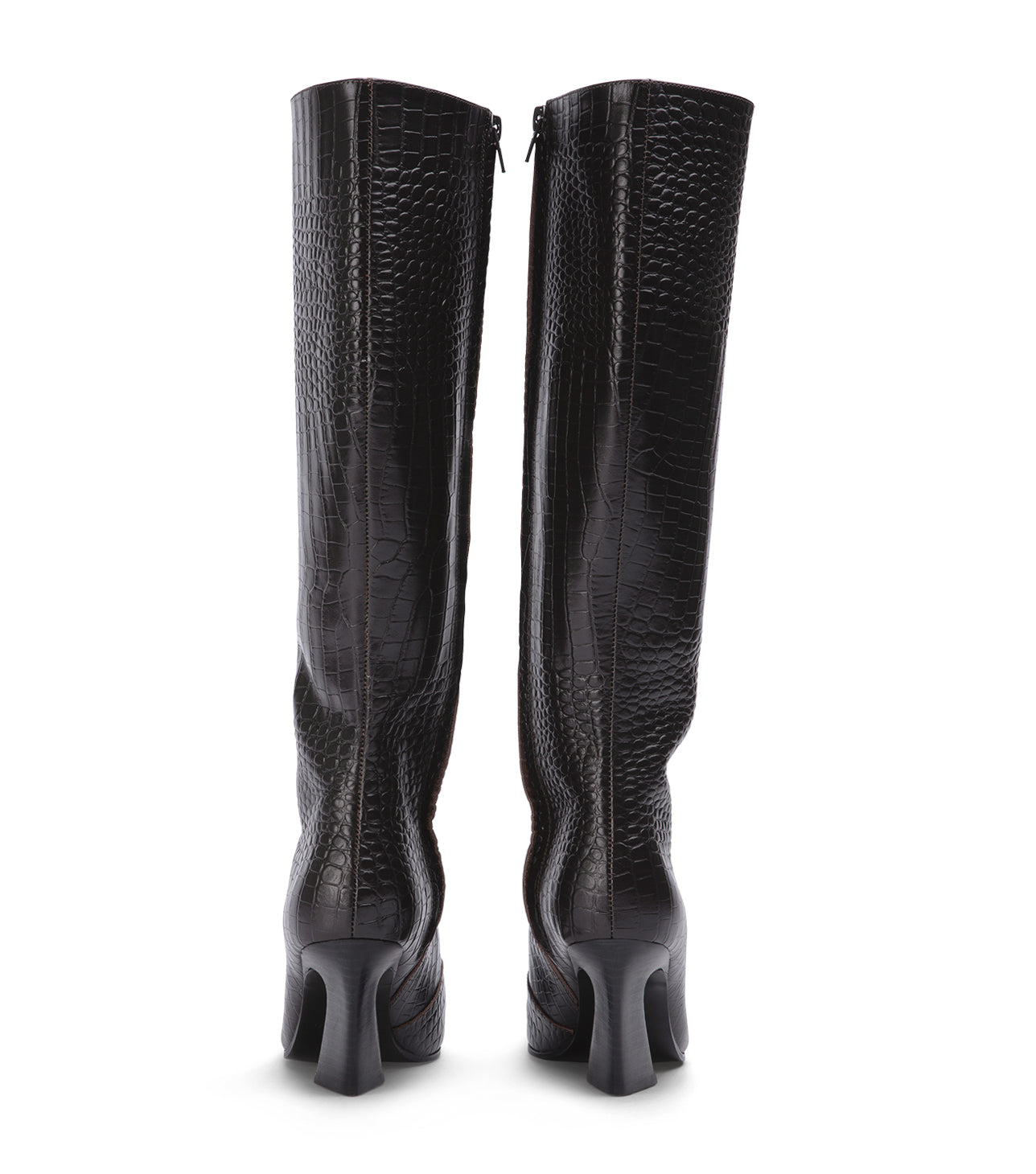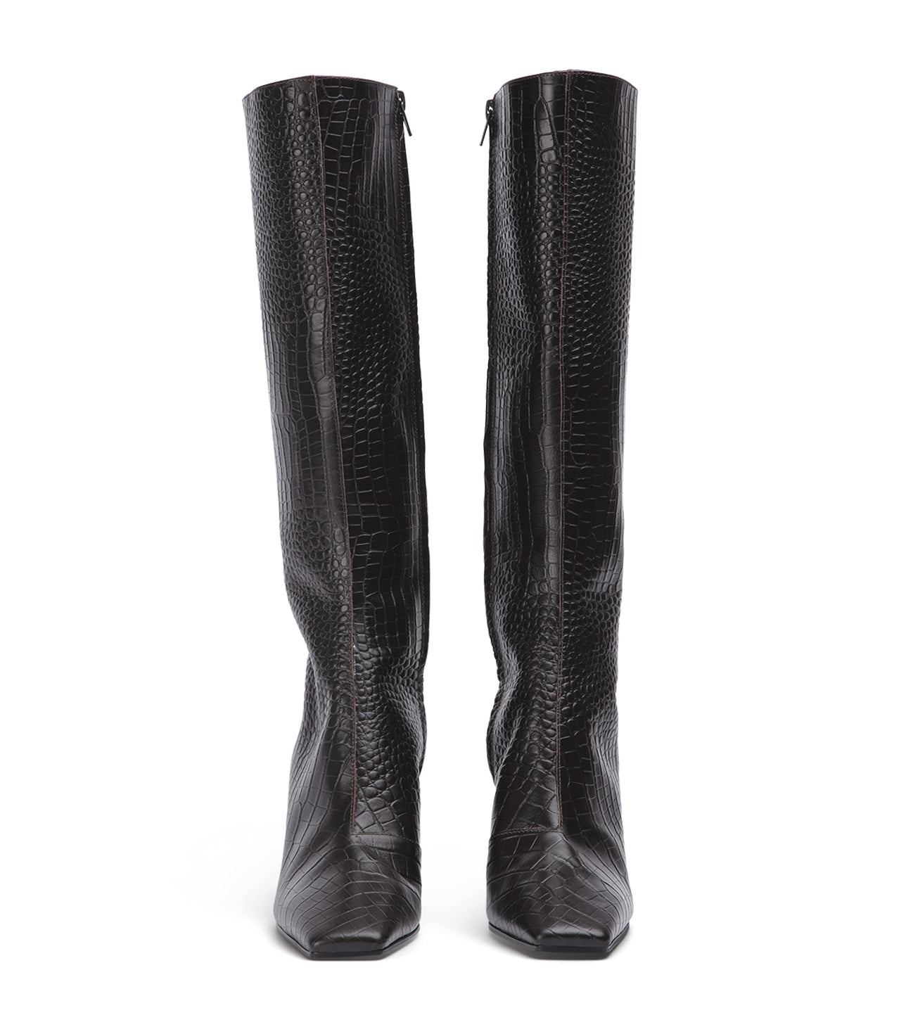 Meet Quiz the perfect square-toe, knee high boot to add to your wardrobe. Featuring a classic silhouette with a sculptured heel, elevate any ensemble with this versatile boot.