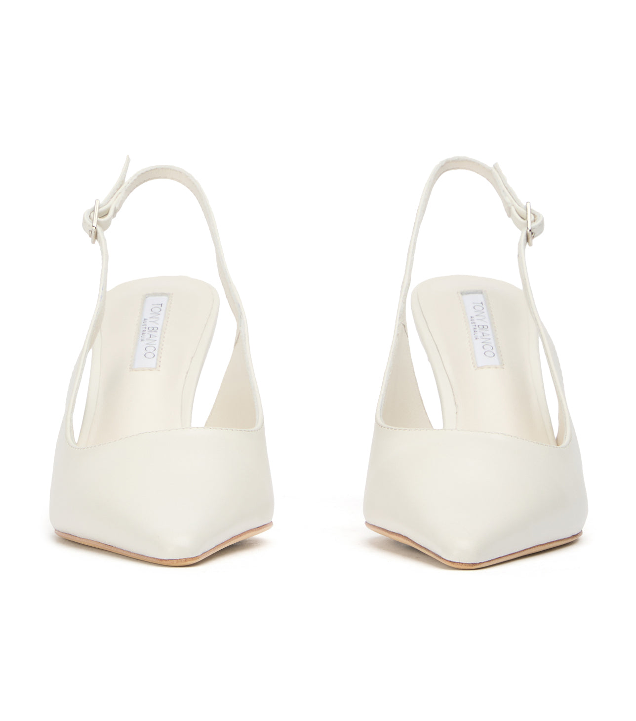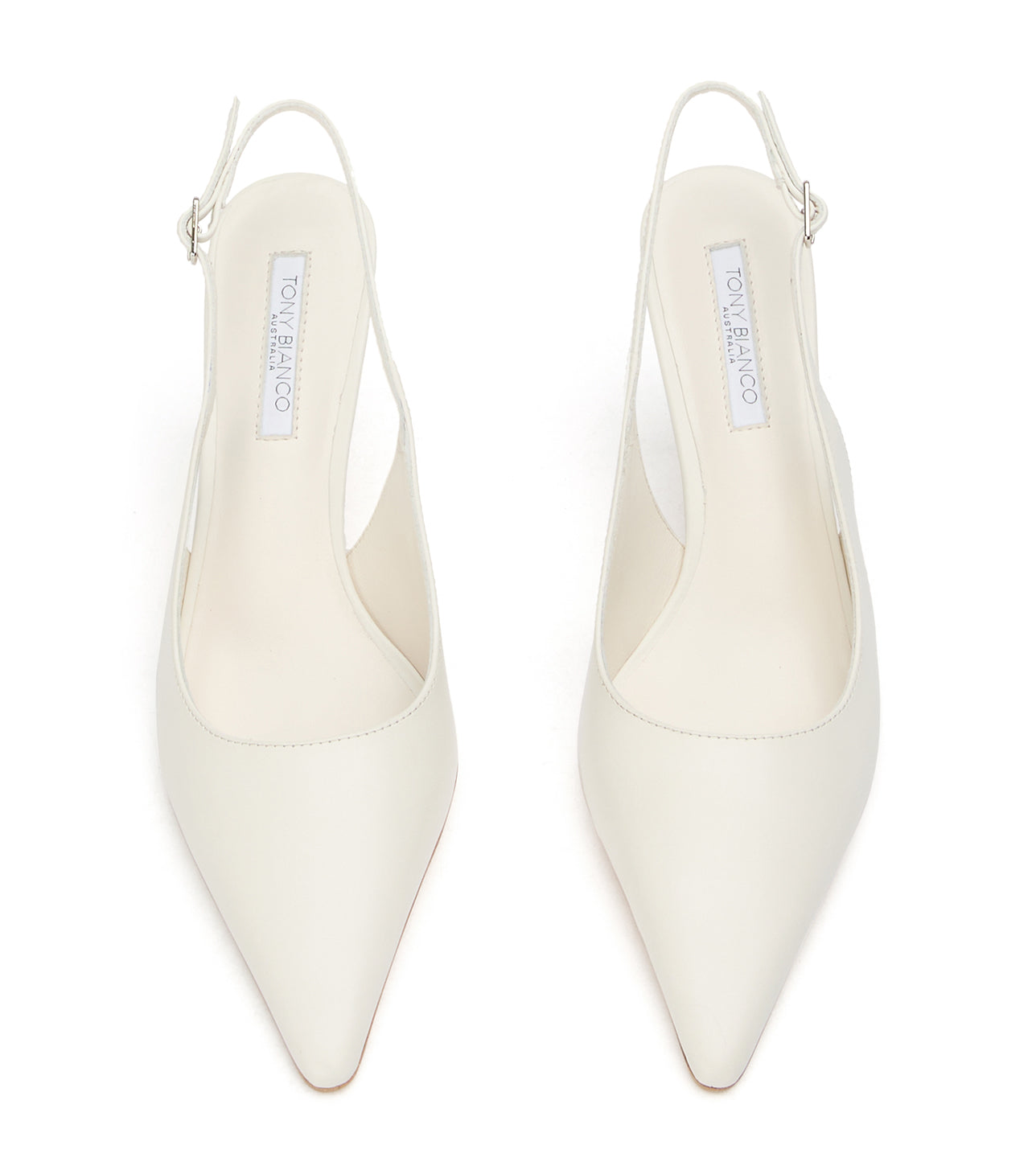 Samar is a chic slingback heel crafted in smooth milk capretto leather for a fresh, modern look. Featuring a pointed toe, adjustable slingback strap, and sculpted mid-to-high heel, this women’s leather pump is perfect for bridal wear, events, and polished day-to-night styling. A refined essential designed for effortless sophistication.