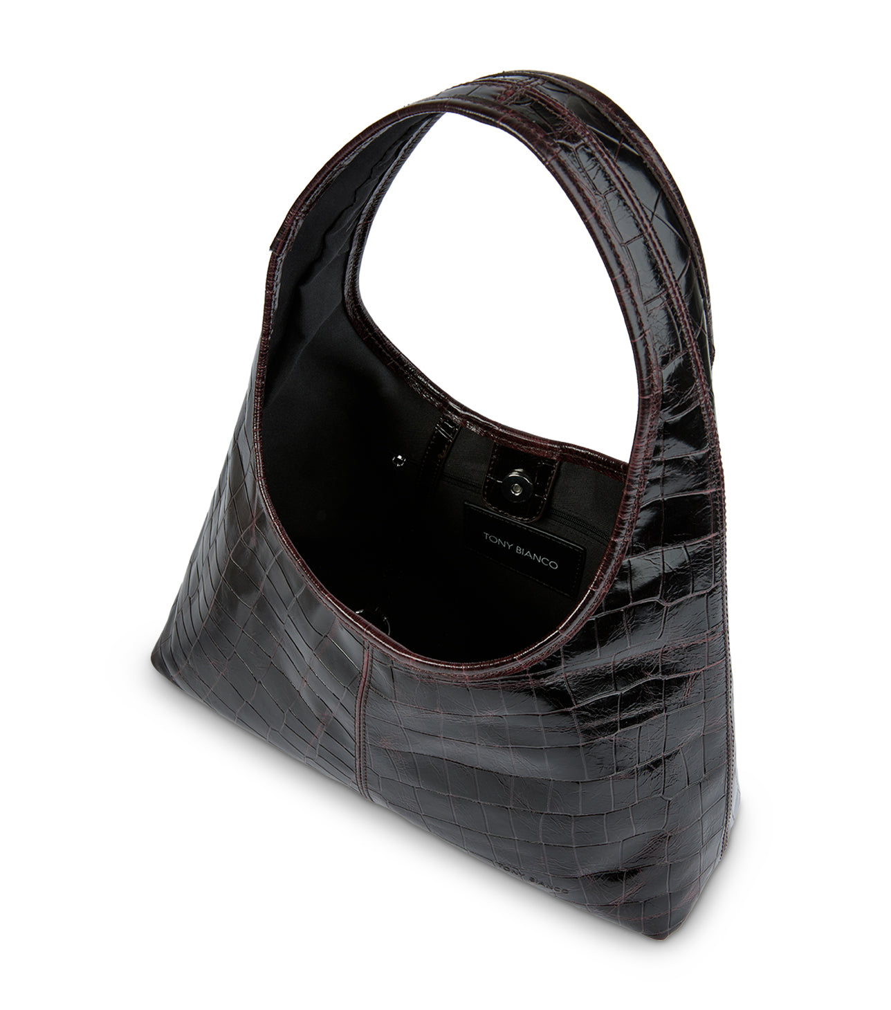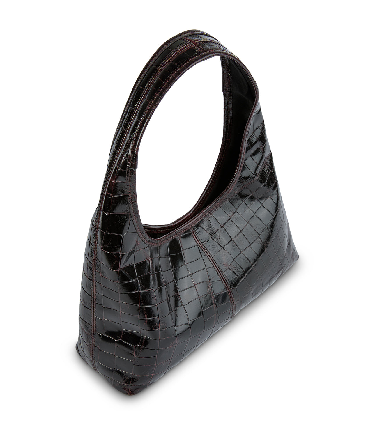 Embrace effortless style with Lula, a classic burgundy leather shoulder bag. This medium-sized handbag features a soft, slouchy silhouette and croc finish for a modern twist on a timeless design. With a secure magnetic button closure, the Lula is the perfect everyday bag for carrying all your essentials while adding a touch of sophistication to any outfit.