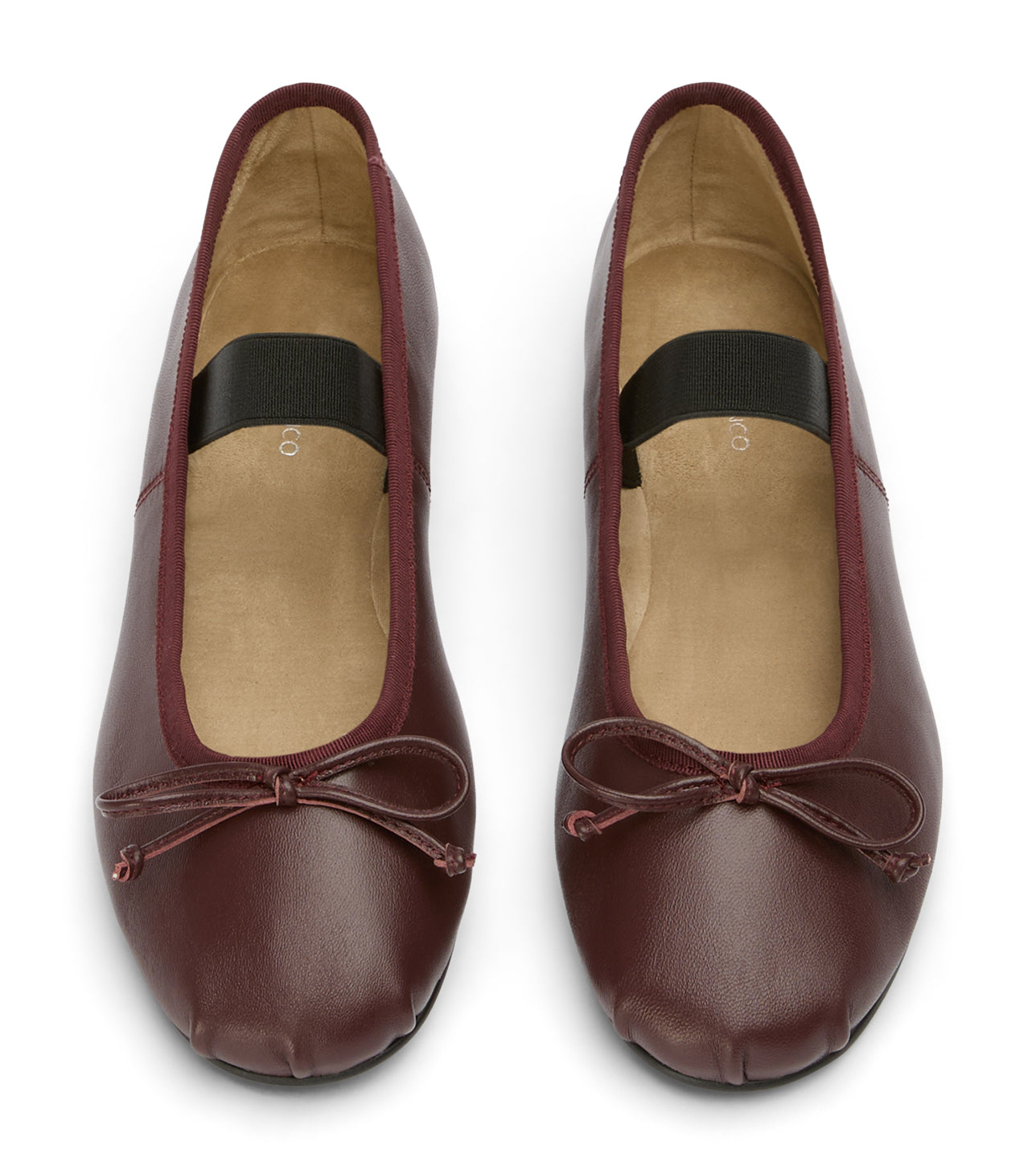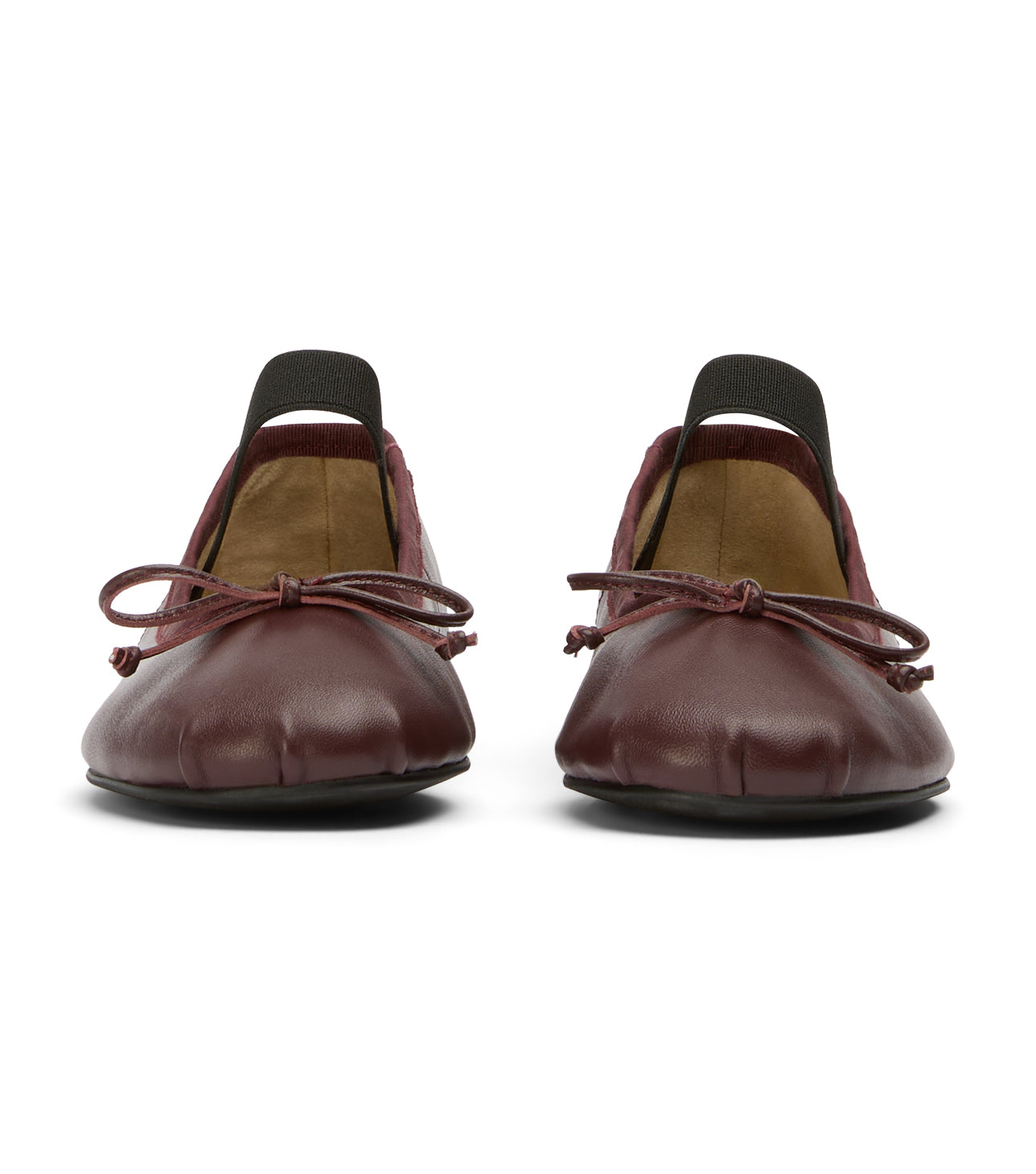 Caspian draws inspiration from classic ballet style, featuring a refined bow and elastic strap. This chic flat offers a luxury finish, bringing polished ease and a beautifully defined silhouette to your look.