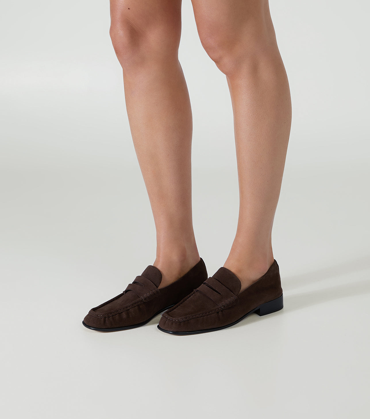 Make the Gomez loafer your new power piece. Crafted in brown suede leather, this flat is a luxurious everyday wardrobe essential, boasting a sleek penny loafer design, scrunch detailing and a durable, comfortable flat heel. It's the stylish statement that instantly elevates your casual look, making it ideal for the office or adding polish to a weekend outfit.