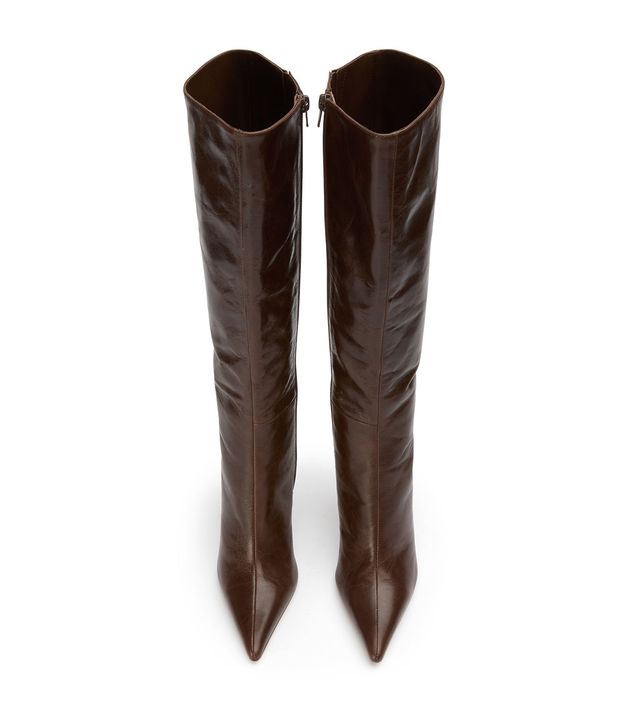 With a pointed toe, stiletto heel, and convenient inner zipper, the Naxos calf boot delivers bold sophistication and style, perfect for powering through the day or night in confidence.