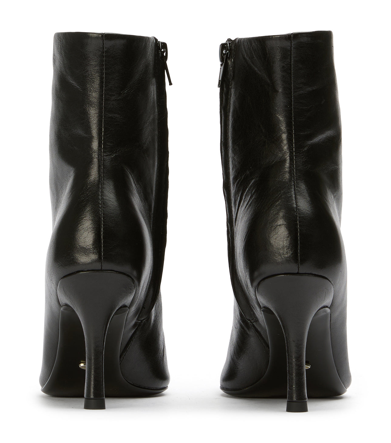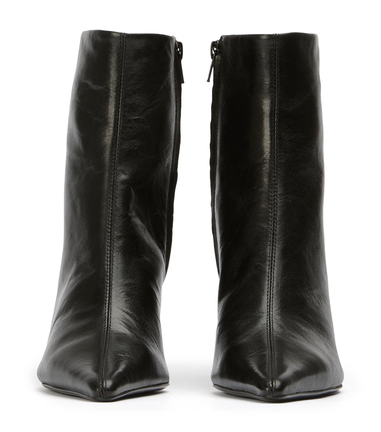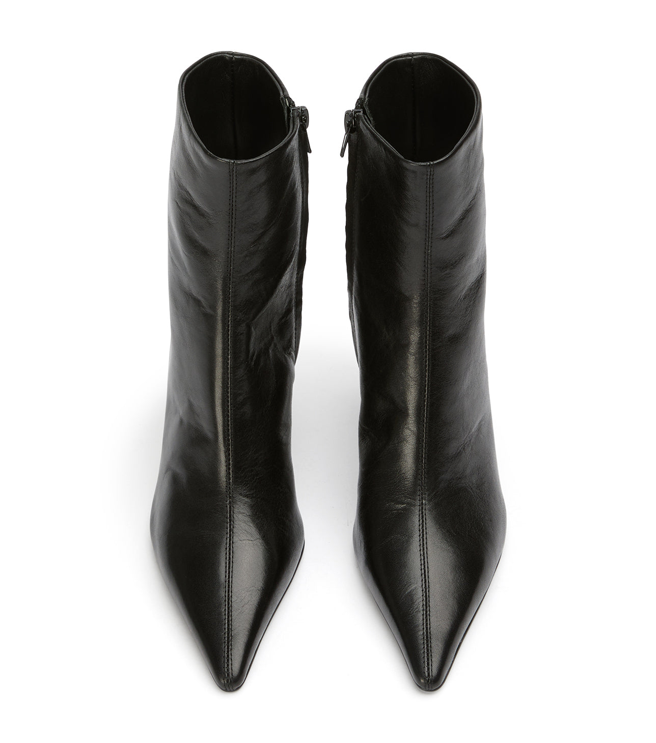 Introduce a sophisticated edge to your footwear with the Sweetie ankle boot. Crafted from smooth black vintage leather, this boot is a must-have everyday essential, featuring a graceful ankle length, a sharp pointed toe, and a flattering slender 8cm heel. Its effortless, clean silhouette is designed to pair flawlessly with anything in your wardrobe, making it the ultimate transitional boot for elevated style.