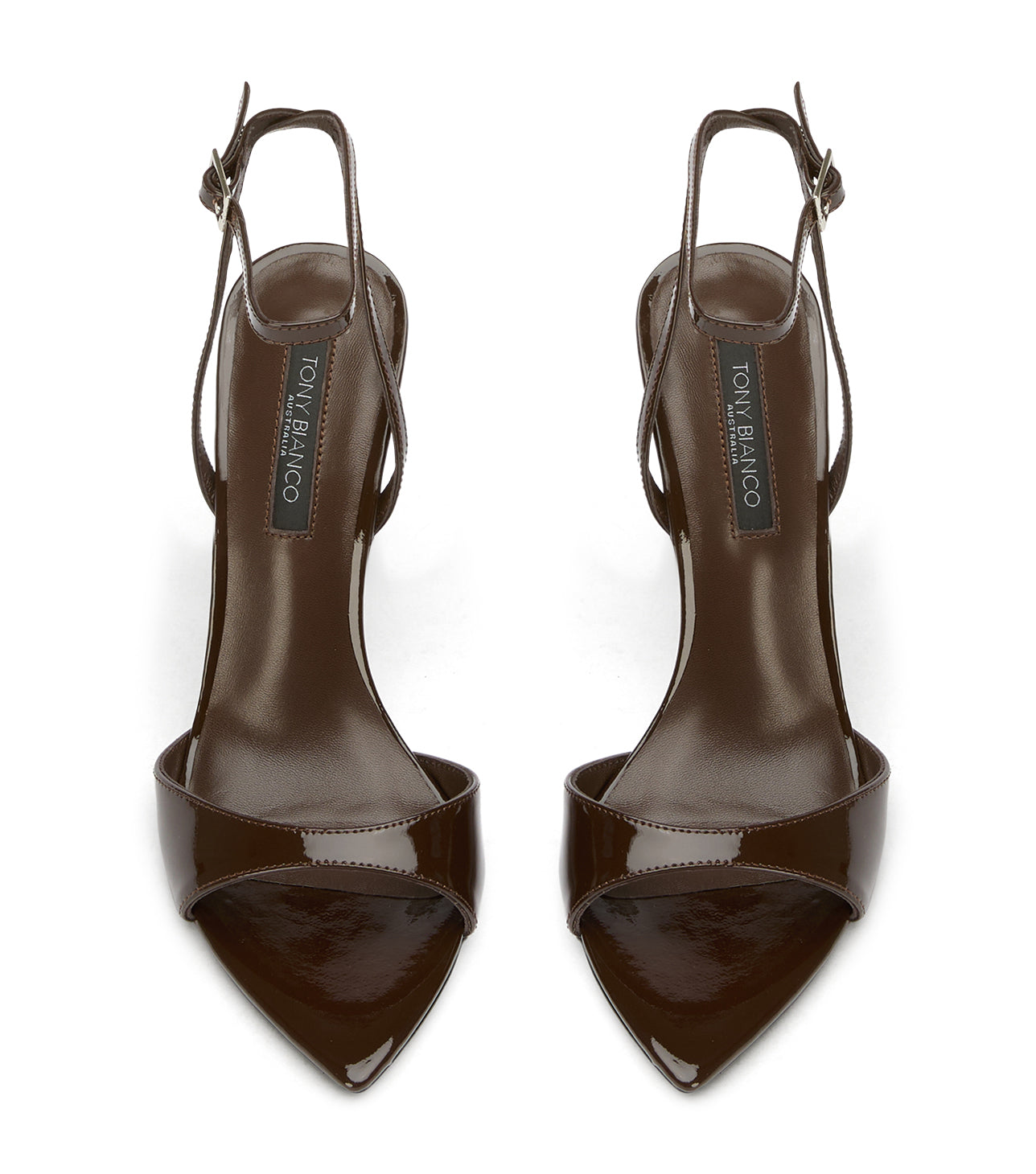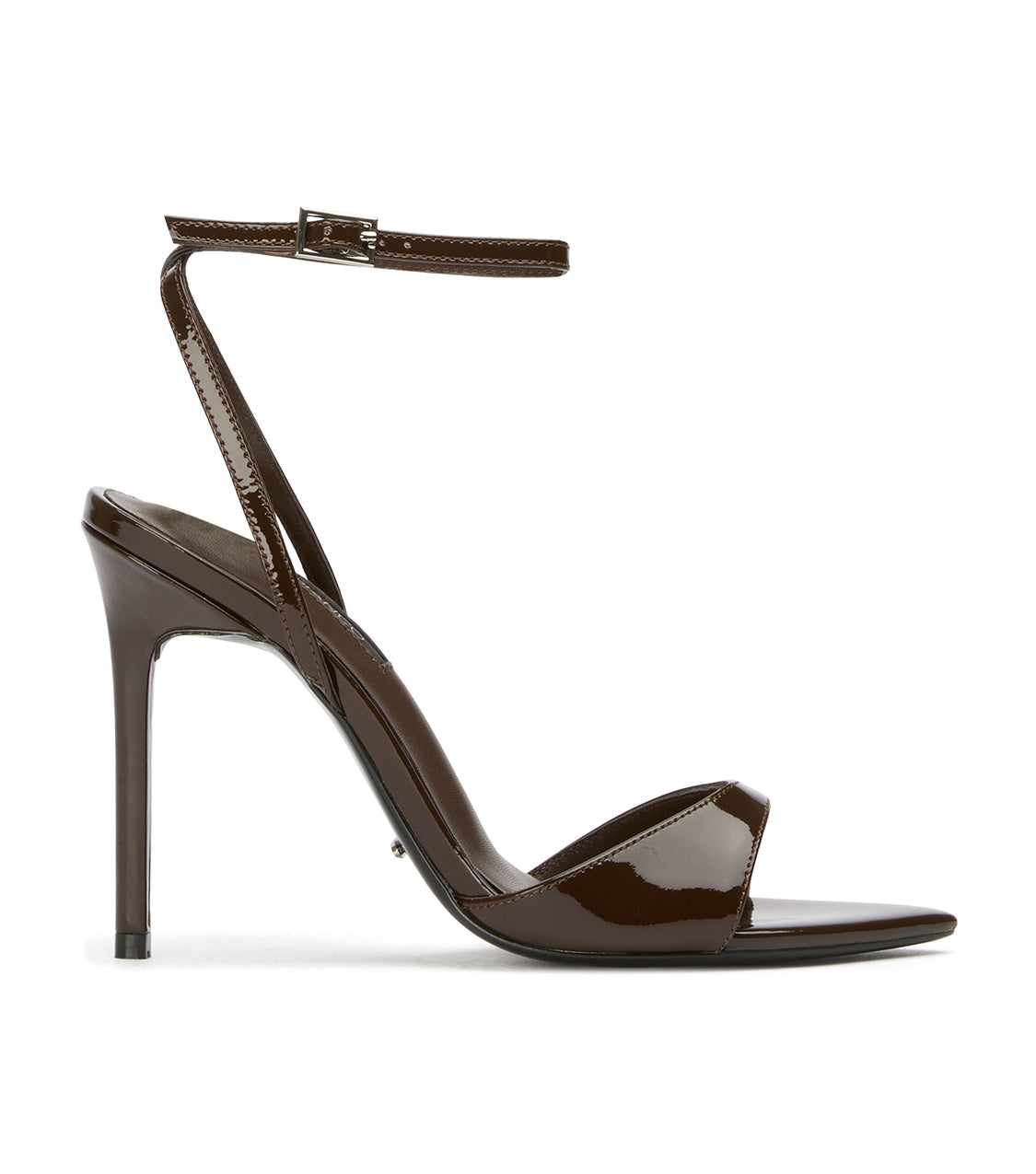Step into effortless glamour with Molly, a sleek stiletto sandal in rich Espresso Patent for a high-shine, statement finish. Designed with a minimalist ankle strap and open-toe silhouette, this elevated heel is perfect for evening wear, events, and modern occasion styling. A must-have in any fashion-forward women’s shoe wardrobe.