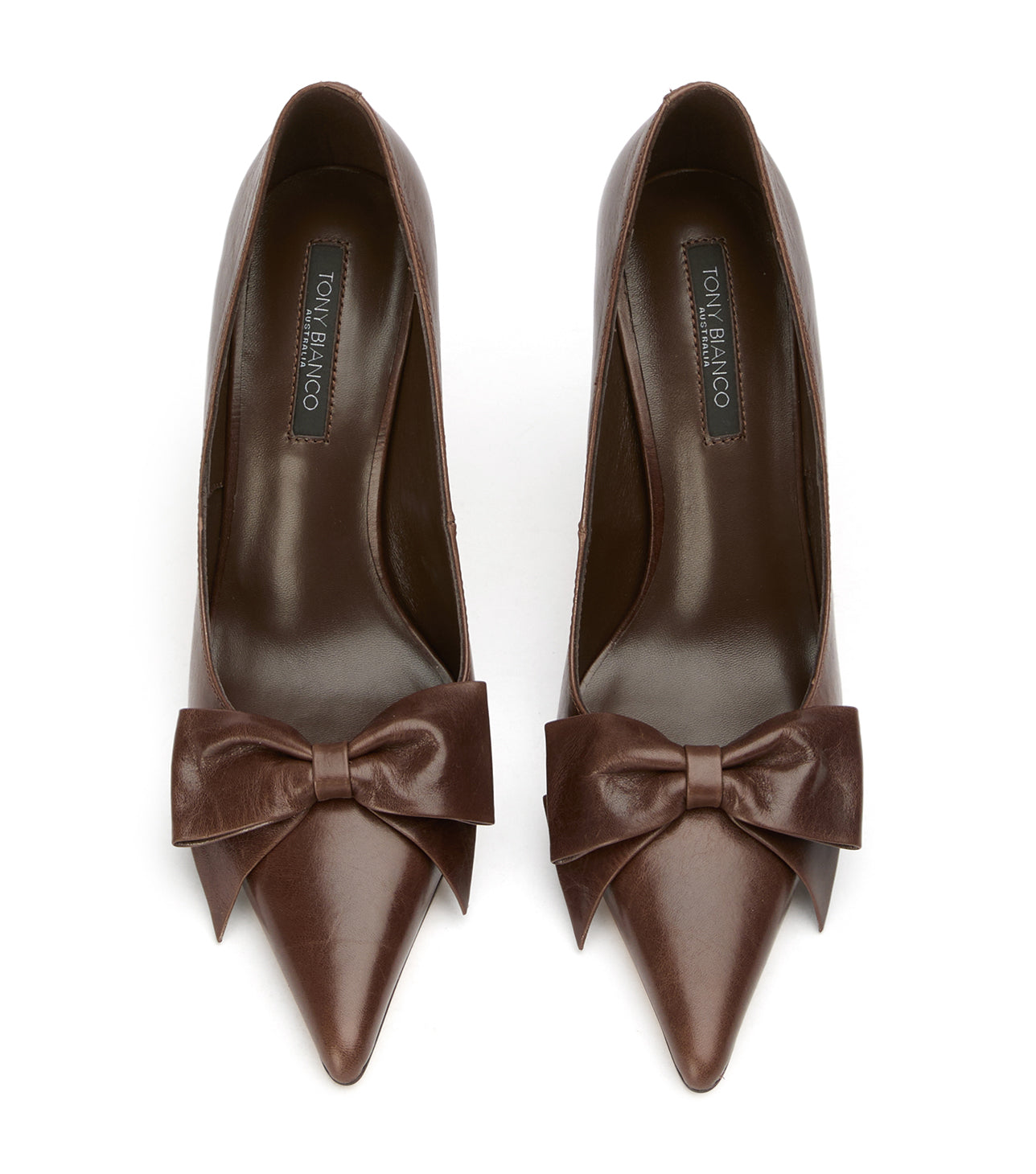 Make a statement in Nellie, a sleek pointed-toe stiletto heel finished with a chic bow detail. Designed for elevated evening wear and modern occasion styling, this timeless chocolate vintage pump brings instant sophistication to any look. The perfect women’s high heel for events, dinners, and polished street style.