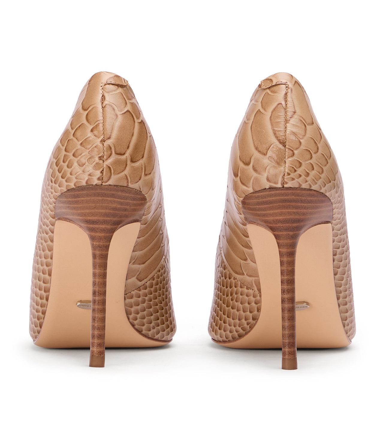 Elevate any outfit with Niki, our versatile black python heels with a twist. The distinctive python texture adds an exotic touch to their streamlined silhouette and sophisticated stiletto heel. These pumps are a must-have for every occasion and every shoe-drobe, offering a unique blend of elegance and bold style.