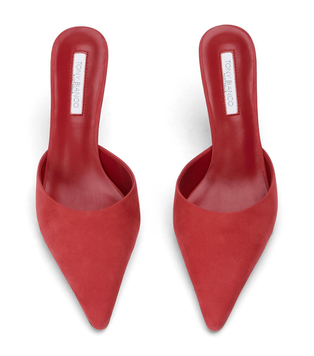 Meet Sicily, your new go-to mule in a vibrant red for effortless elevation. This genuine suede leather design brings back 90s cool with her sharp pointed toe and open back. Finished with a chic low heel, Sicily offers modern minimalism that stands out.
