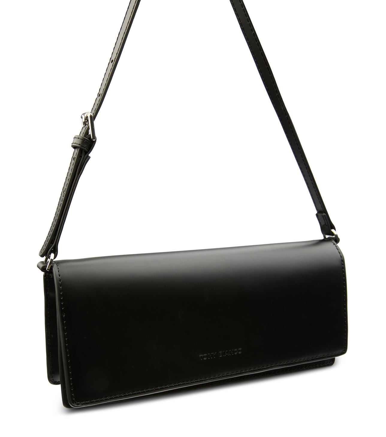 Lizzie bag is a sleek black smooth shoulder bag designed with a minimalist flap silhouette and refined everyday elegance. Perfect for modern styling, this women’s designer-inspired handbag transitions effortlessly from day to night. A timeless wardrobe essential for polished, elevated looks.