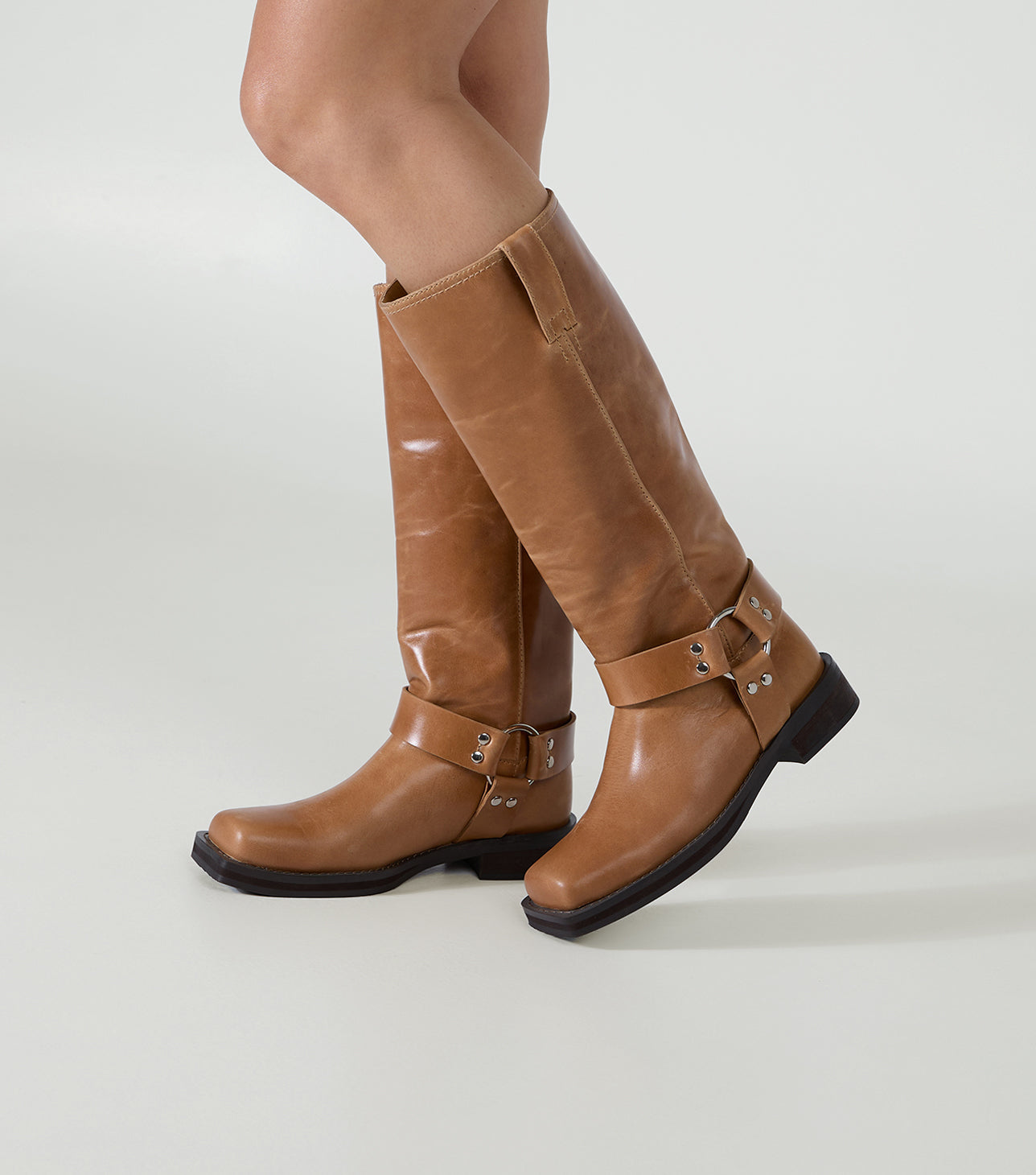 Staying on trend has never been easier with Biker. Featuring a squared toe shape and side accent, this calf boot remains a classic staple for anyone who desires just a little bit of edge. Pair with jeans, a knitted dress or mini skirt, the options are endless.