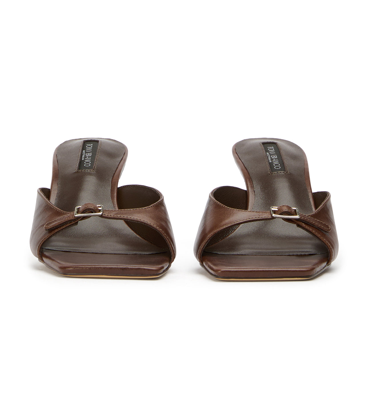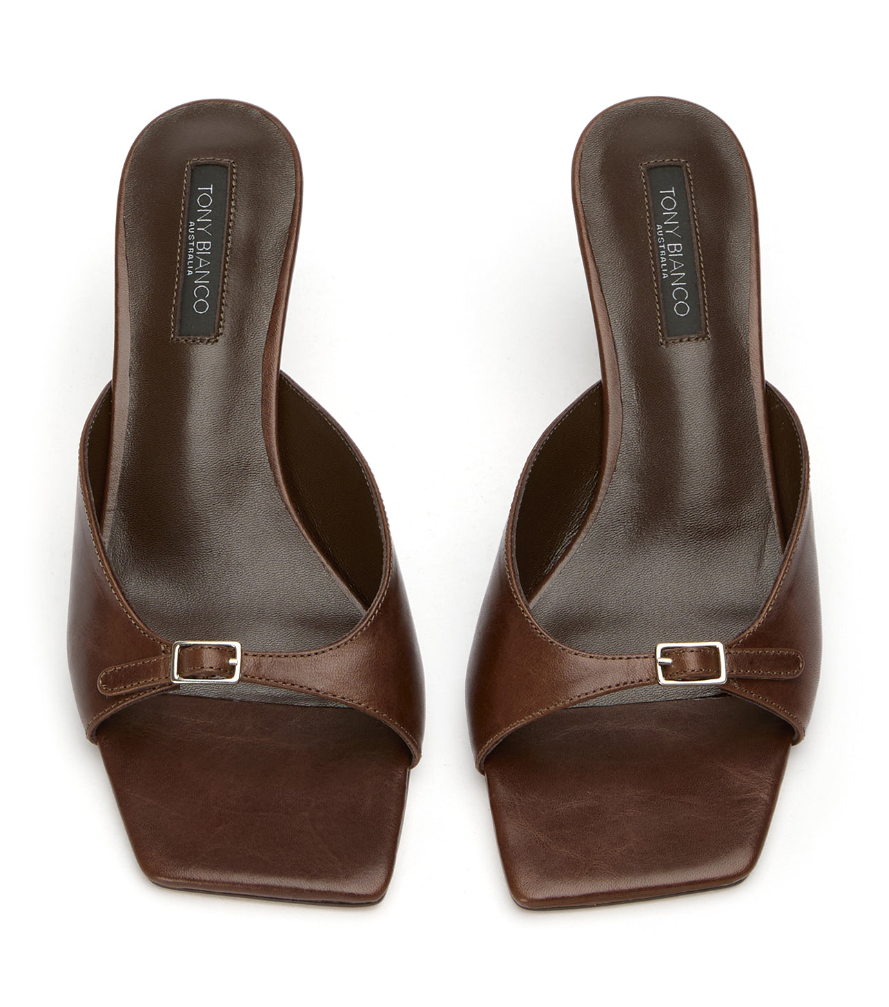 Refined and understated, Rada is a low mule heel with an open square toe and subtle buckle detail. A modern essential with effortless polish.