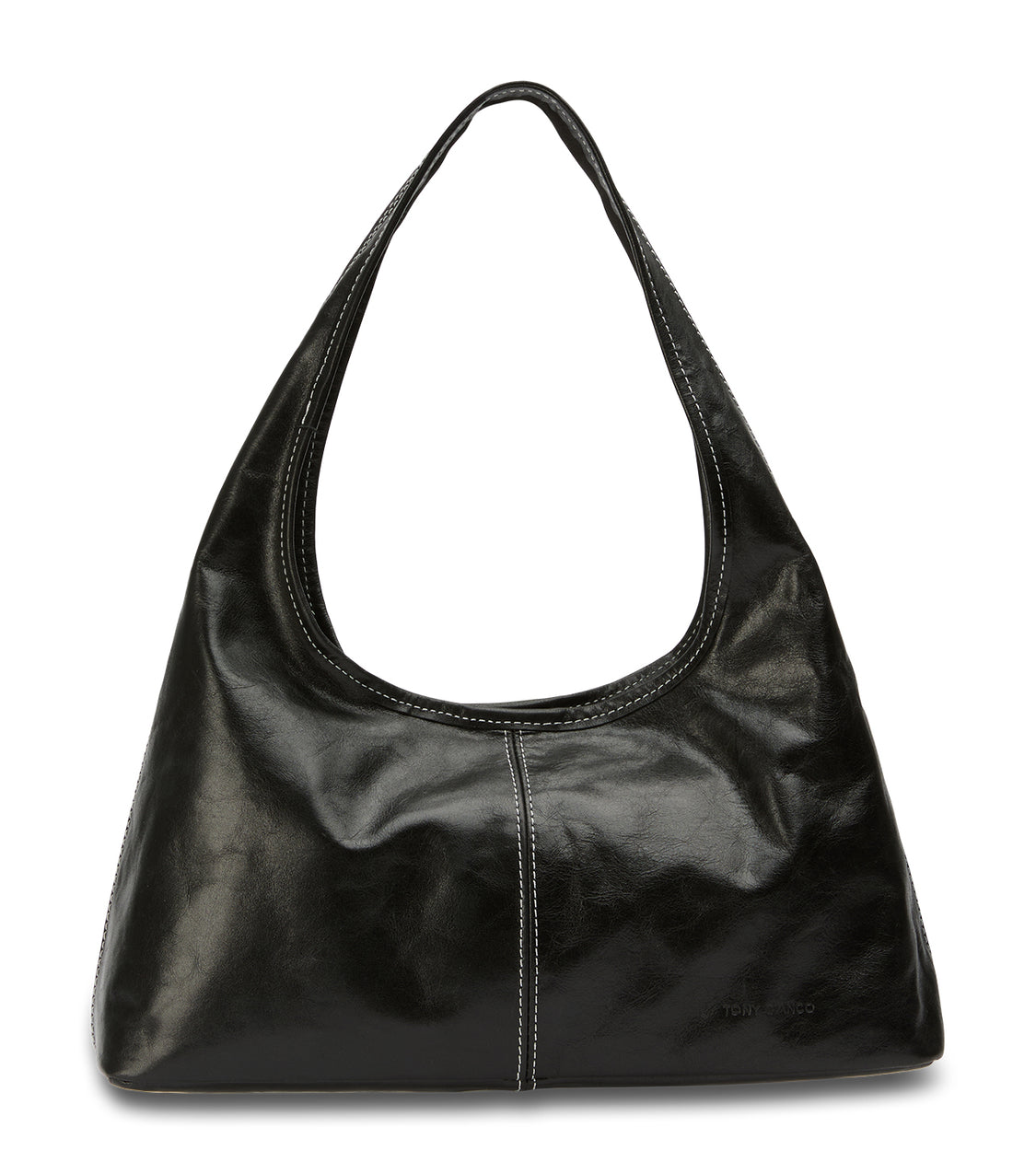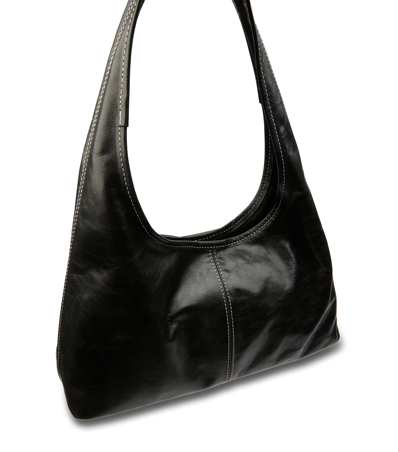 Embrace effortless style with Lula, a classic black leather shoulder bag. This medium-sized handbag features a soft, slouchy silhouette and contrast stitching for a modern twist on a timeless design. With a secure magnetic button closure, the Lula is the perfect everyday bag for carrying all your essentials while adding a touch of sophistication to any outfit.
