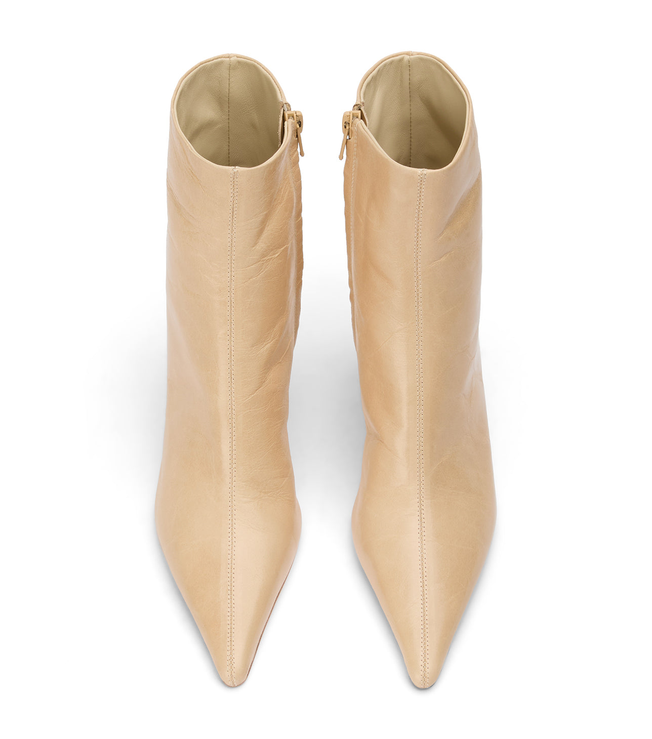 Introduce a sophisticated edge to your footwear with the Sweetie ankle boot. Crafted from smooth vanilla vintage leather, this boot is a must-have everyday essential, featuring a graceful ankle length, a sharp pointed toe, and a flattering slender 8cm heel. Its effortless, clean silhouette is designed to pair flawlessly with anything in your wardrobe, making it the ultimate transitional boot for elevated style.