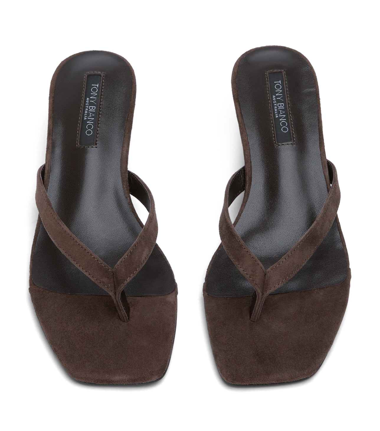 Meet Annie, the suede sandal your wardrobe has been waiting for. Crafted from our signature suede leather, this slip-on flip flop offers a chic squared open toe and a delicate kitten heel for effortless comfort and impeccable style.