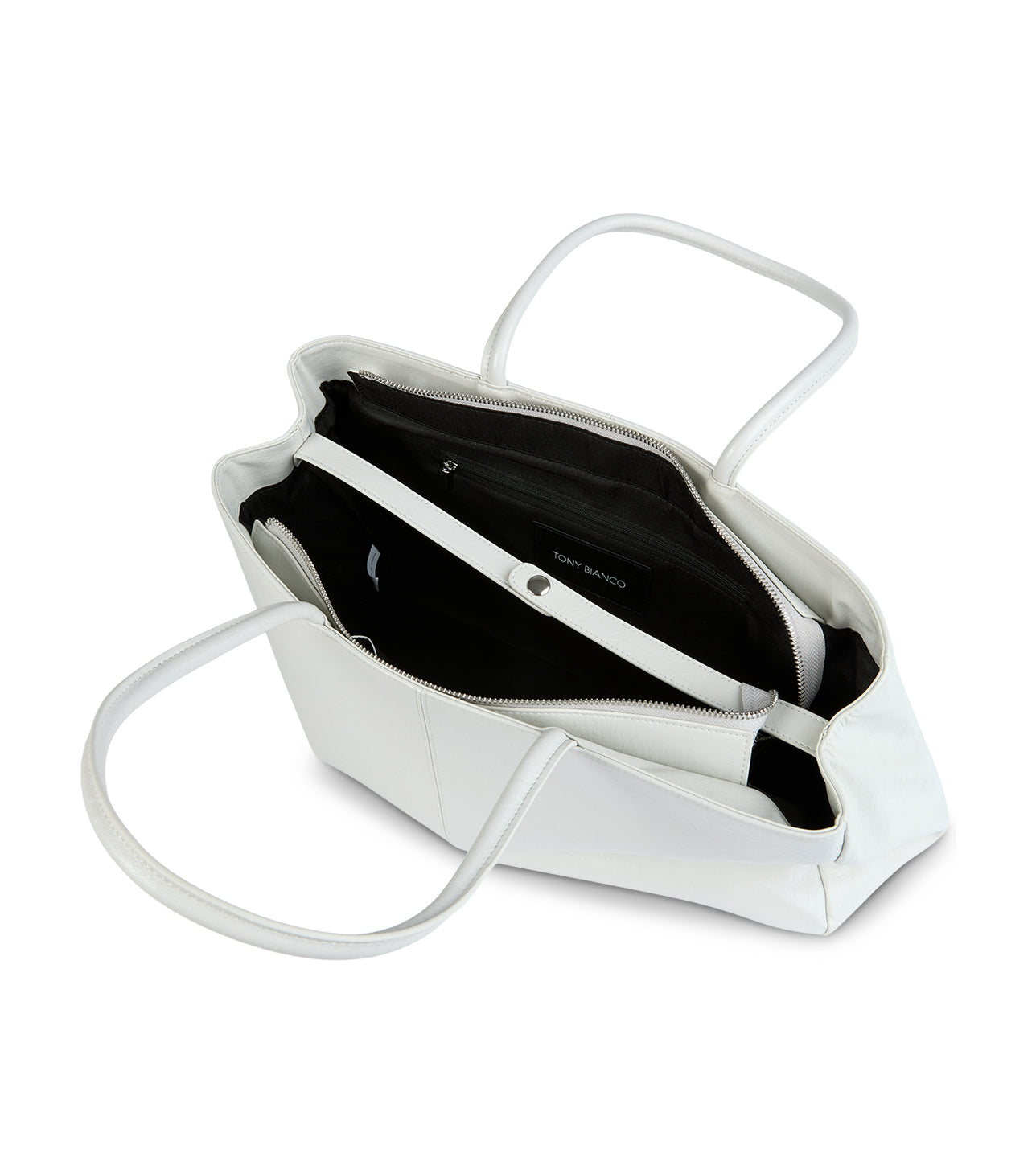 Elevate your professional wardrobe with Evie, a classic large work bag designed for modern women. Crafted from soft white leather, this elegant leather tote offers both style and practicality. The spacious interior features inside pockets to keep all your essentials organised, making it the perfect everyday tote for your daily commute and beyond.
