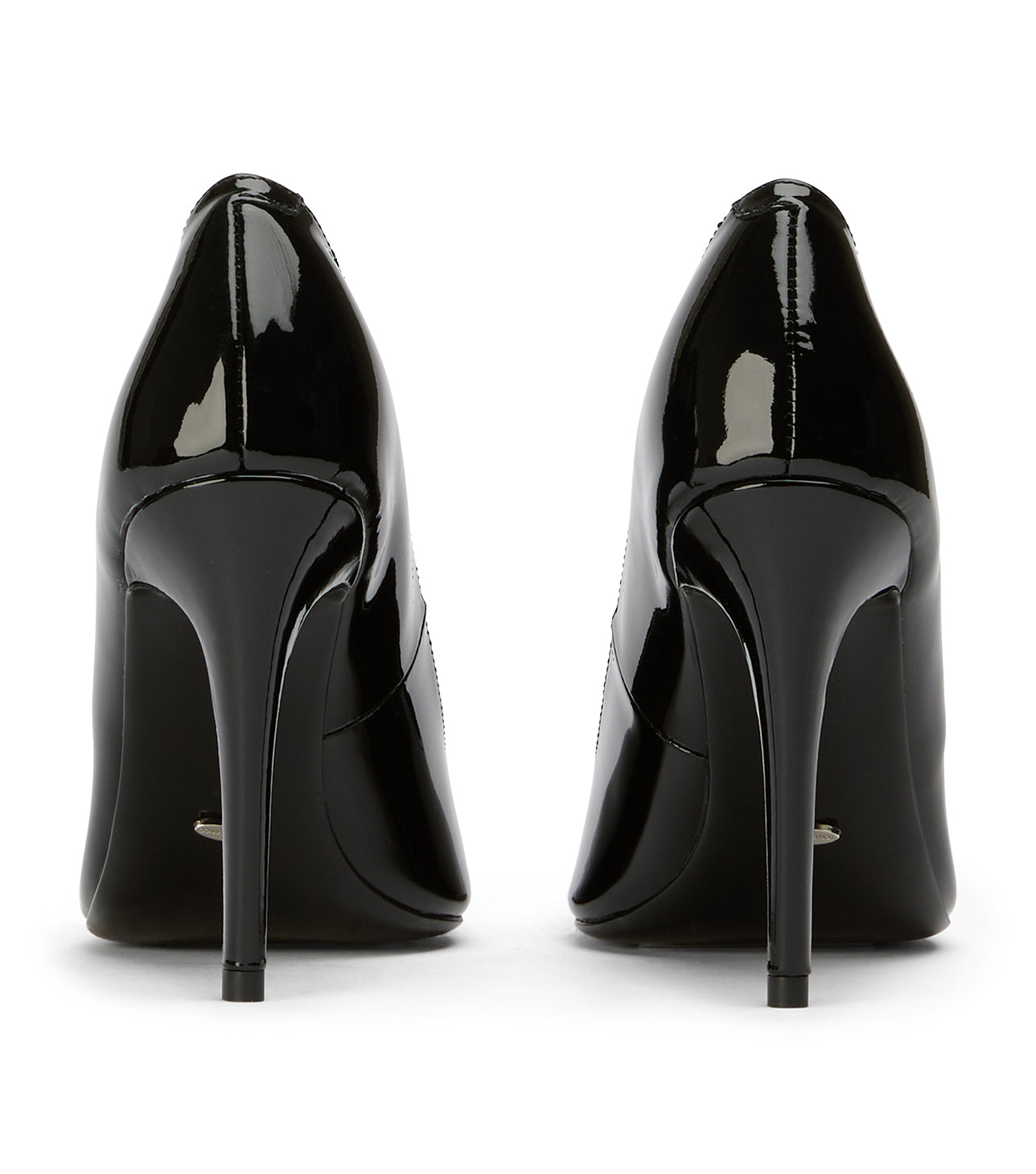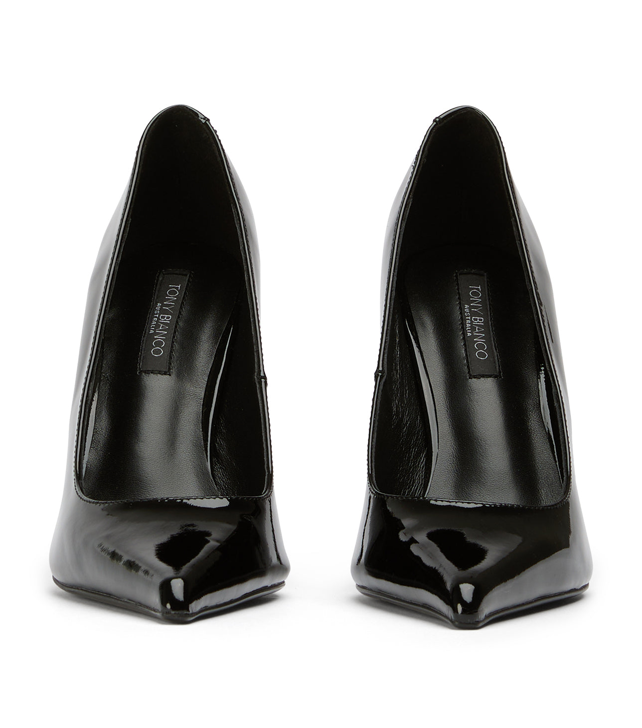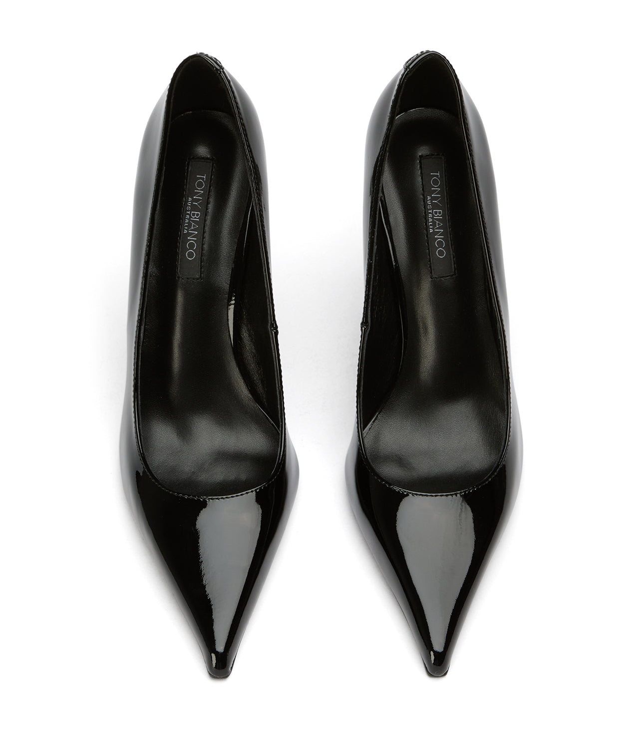Command attention in Cassidy, a sleek stiletto crafted from our black patent leather. With its sharply pointed toe and high-gloss finish, this heel exudes power, polish, and unapologetic glamour.
