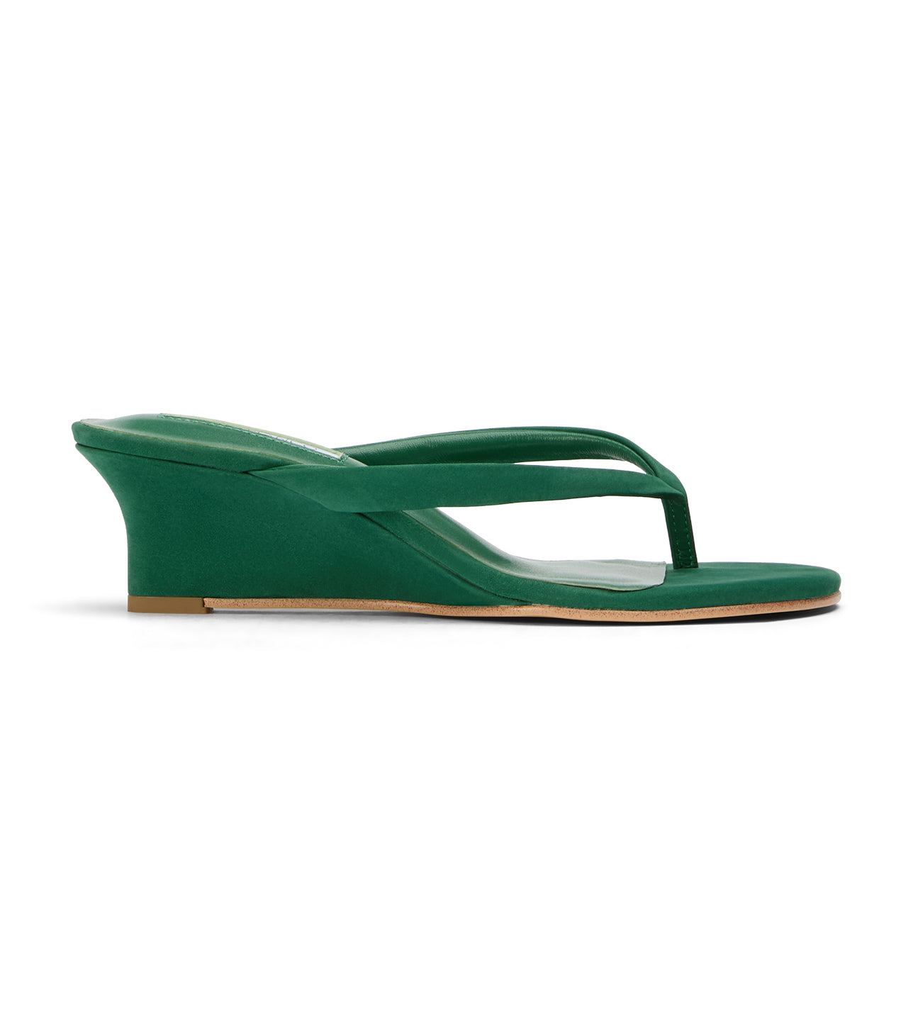 Edgy is a mid-height wedge flip flop in a deep jade green, perfect for fresh summer styling. Designed with a sleek thong strap and cushioned footbed, this women’s wedge sandal offers elevated comfort with a clean, minimalist finish. Ideal for resort wear, casual outfits, and warm-weather dressing.