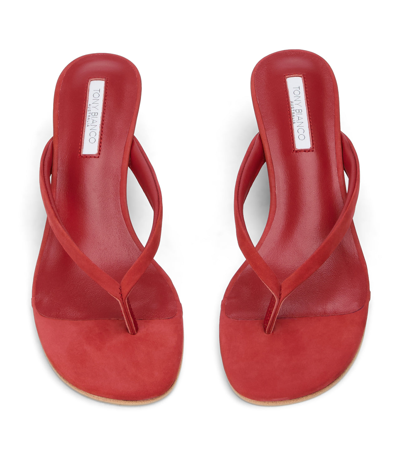 Edgy is a mid-height wedge flip flop in a warm-toned red, perfect for fresh summer styling. Designed with a sleek thong strap and cushioned footbed, this women’s wedge sandal offers elevated comfort with a clean, minimalist finish. Ideal for resort wear, casual outfits, and warm-weather dressing.
