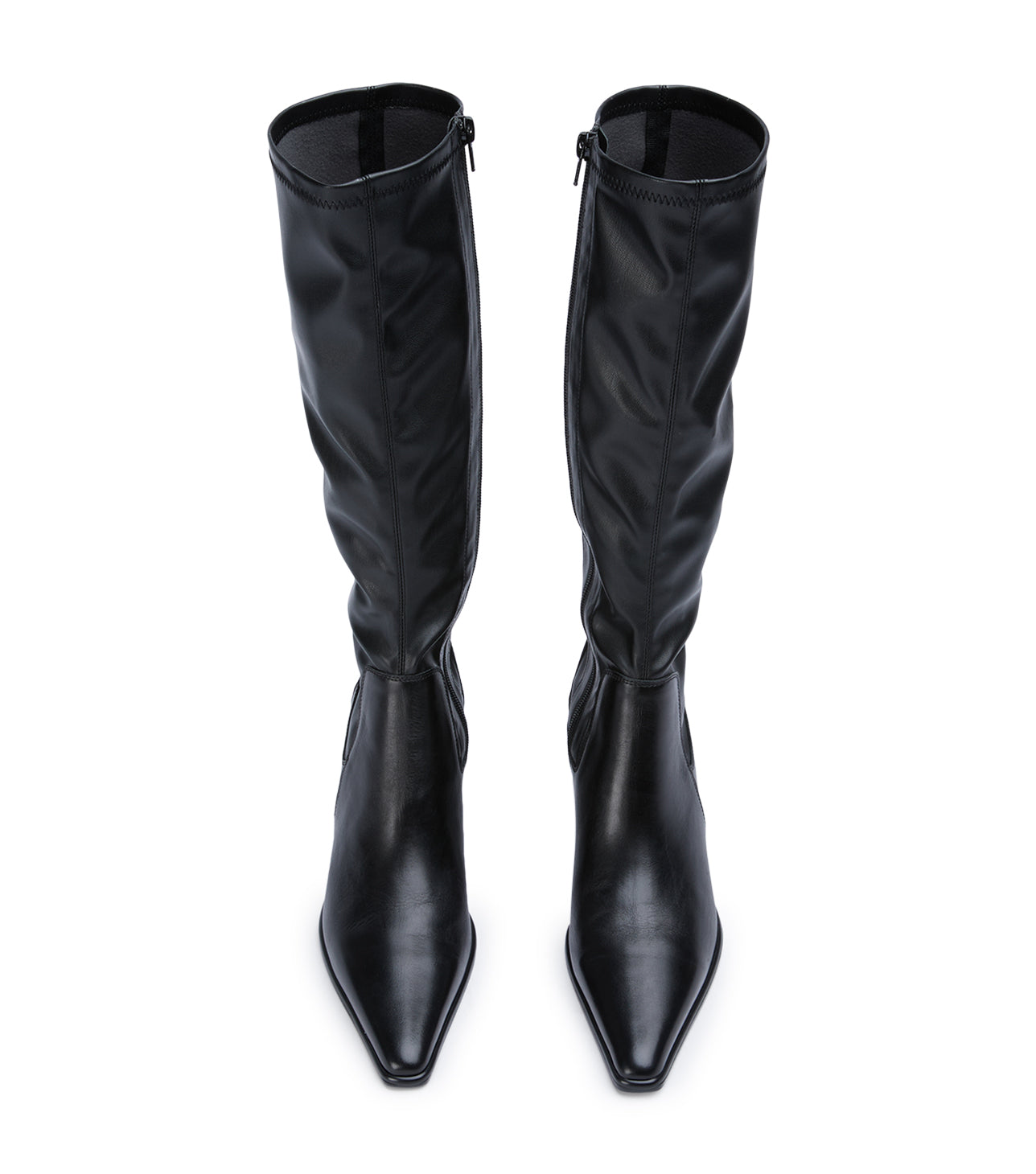 Make a statement with the Emma calf boot. Its extended pointed toe and fitted upper create a contemporary silhouette, accentuated by subtle stitch detailing. The classic block heel and convenient inner zip make this boot both stylish and practical.