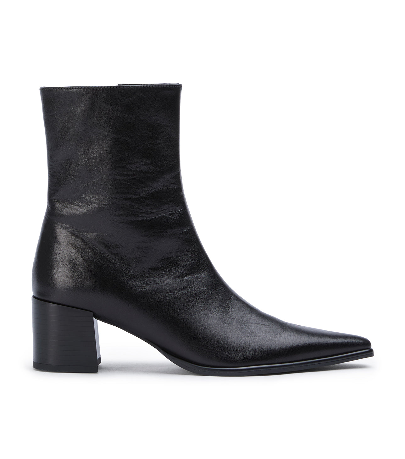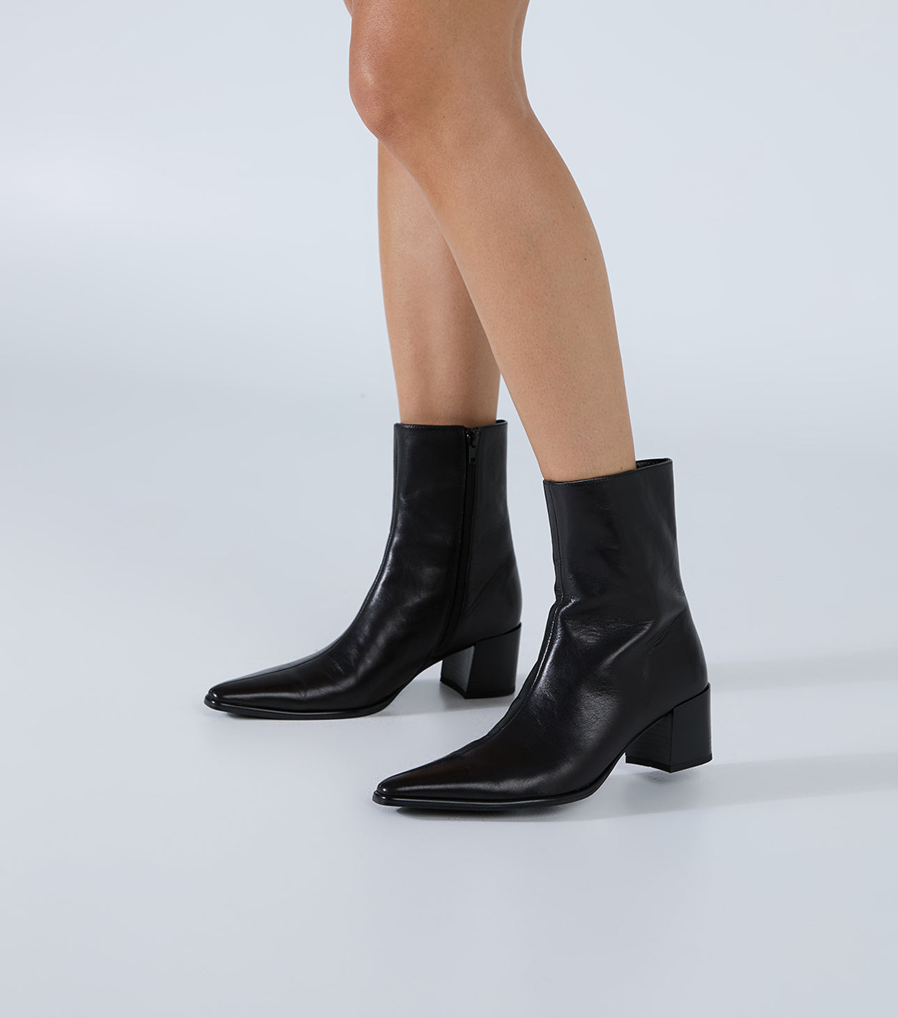 Introducing Eva, a contemporary ankle boot defined by its minimalist charm. Crafted with a supple, smooth upper, a chic block heel, and a modern pointed toe, she's the perfect addition to your curated wardrobe.