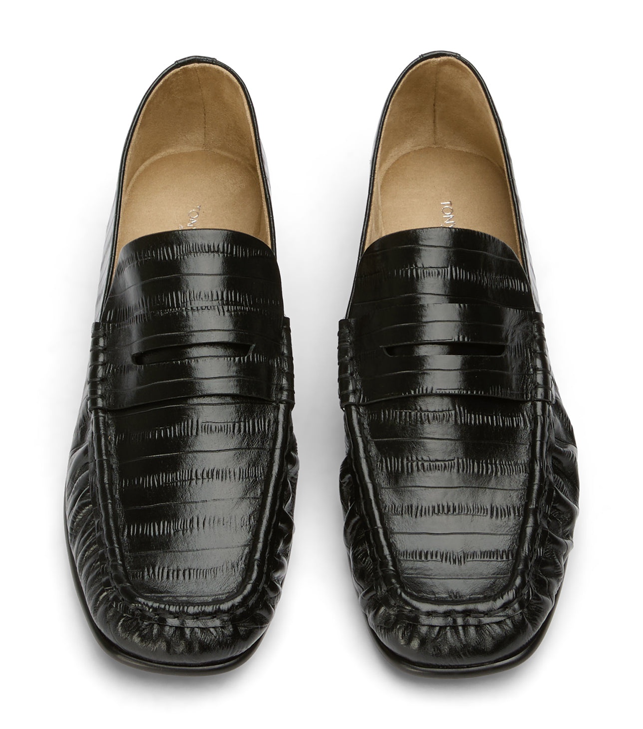 Make the Gomez loafer your new power piece. Crafted in black embossed leather, this flat is a luxurious everyday wardrobe essential, boasting a sleek penny loafer design, scrunch detailing and a durable, comfortable flat heel. It's the stylish statement that instantly elevates your casual look, making it ideal for the office or adding polish to a weekend outfit.