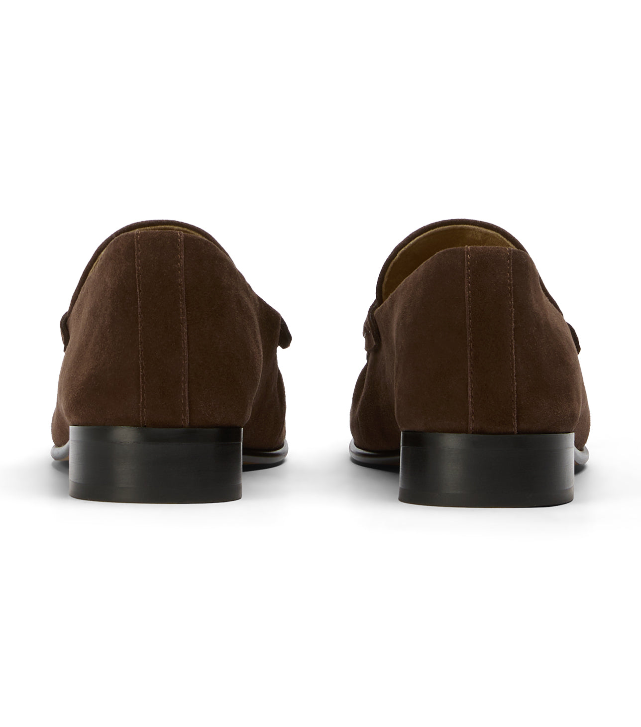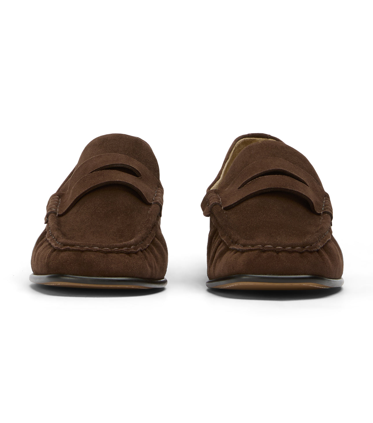 Make the Gomez loafer your new power piece. Crafted in brown suede leather, this flat is a luxurious everyday wardrobe essential, boasting a sleek penny loafer design, scrunch detailing and a durable, comfortable flat heel. It's the stylish statement that instantly elevates your casual look, making it ideal for the office or adding polish to a weekend outfit.