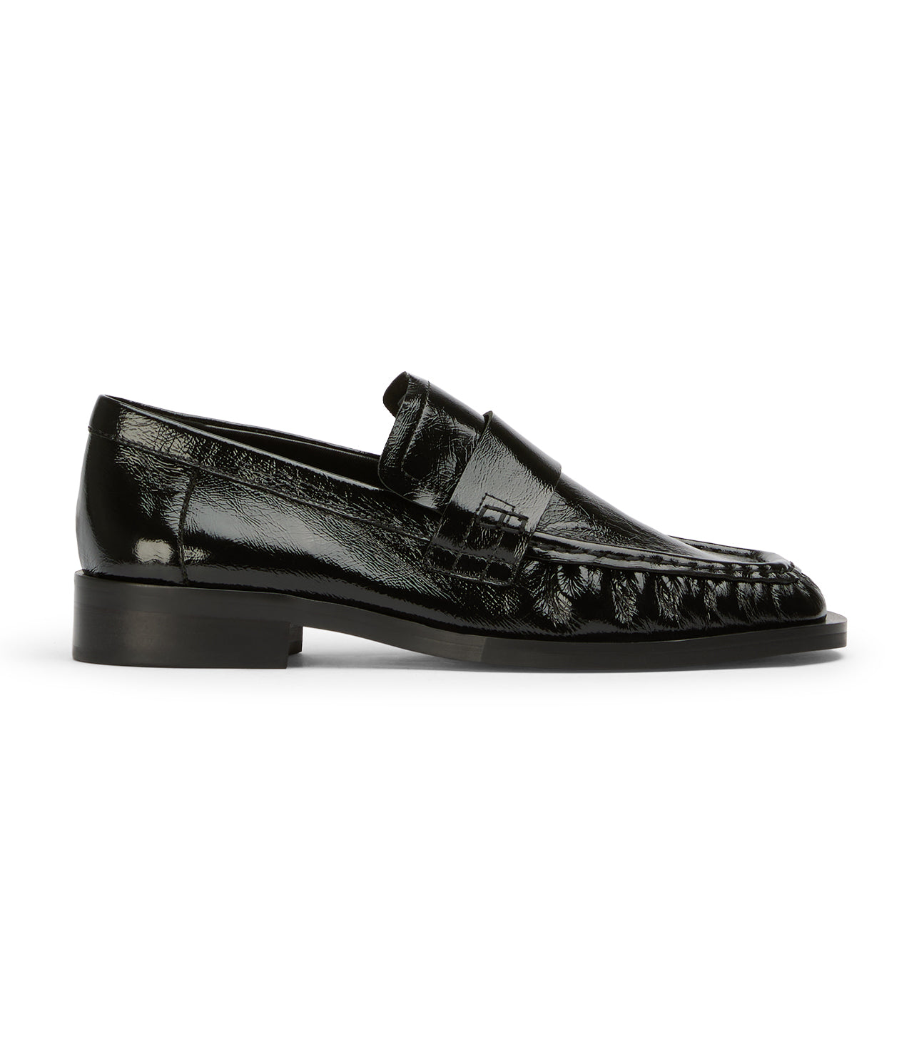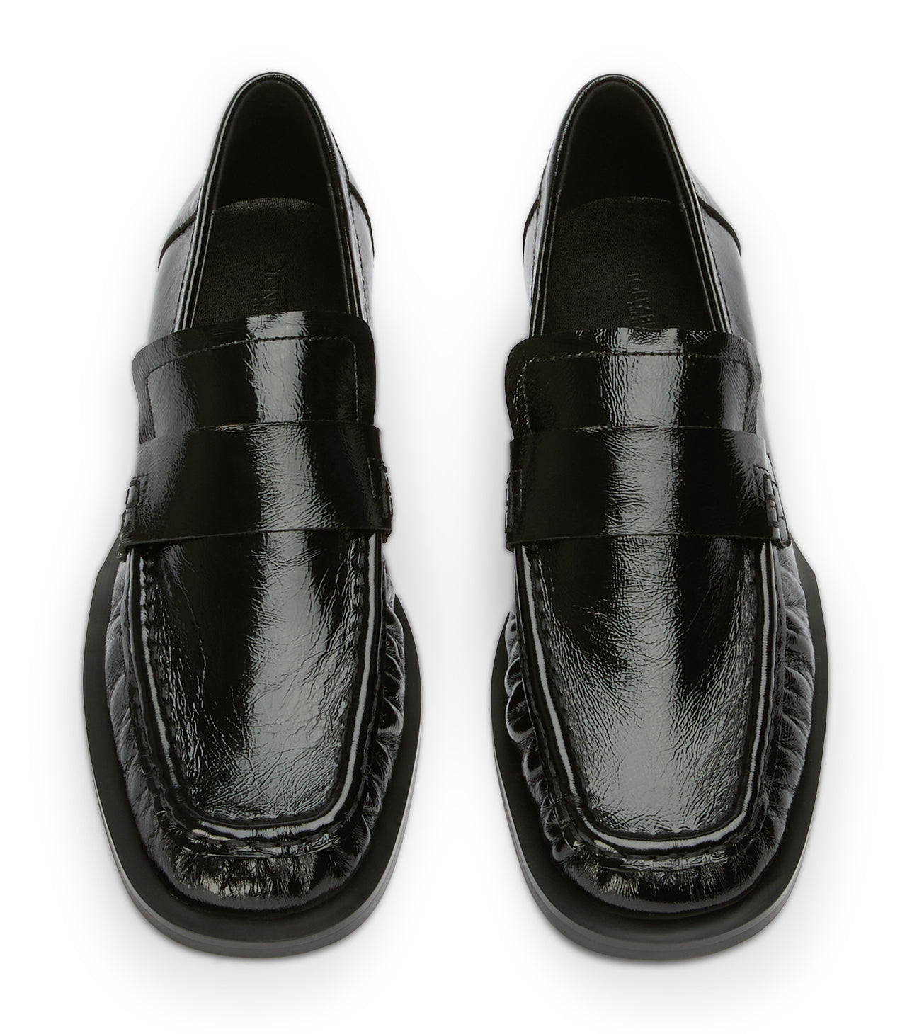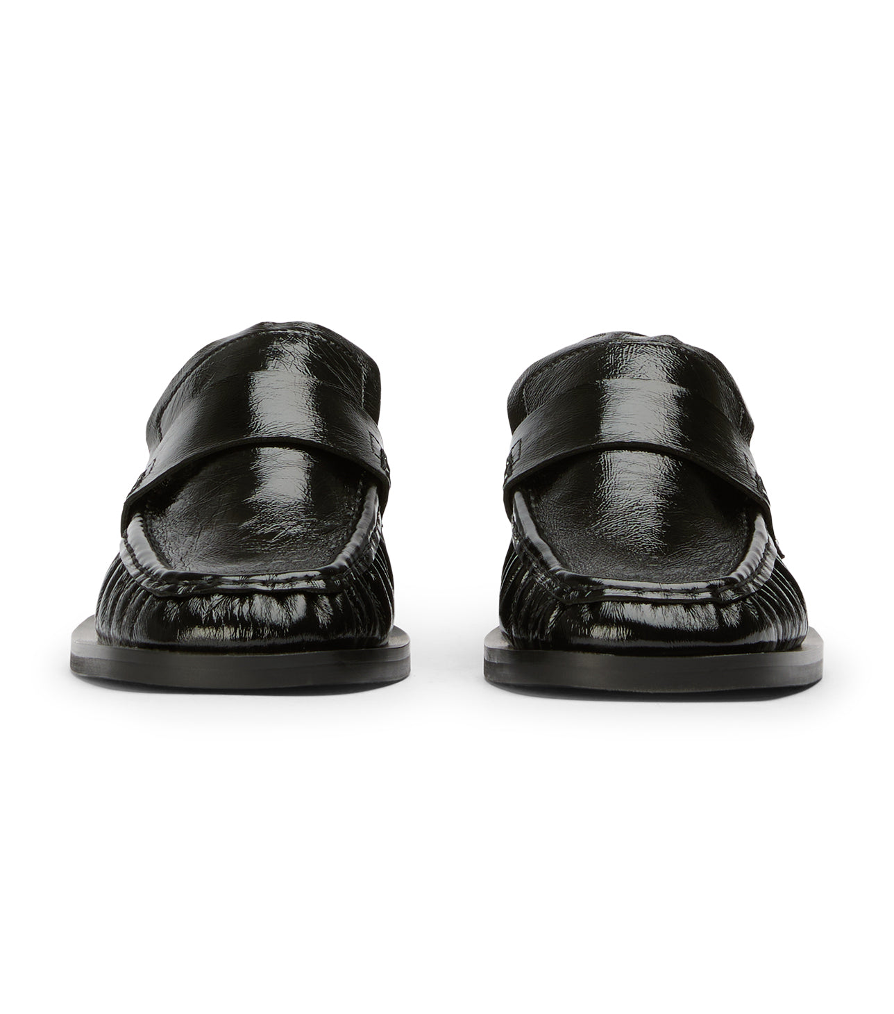 Make a powerful stride with Grand, in a patent black. The chunky loafer that instantly elevates your style. Featuring black leather and pronounced gathered detailing, this flat demands attention. Built with a comfortable, substantial sole, Grand offers a perfect marriage of durability and fashion-forward design, making her the essential shoe for sophisticated, statement-making wear.
