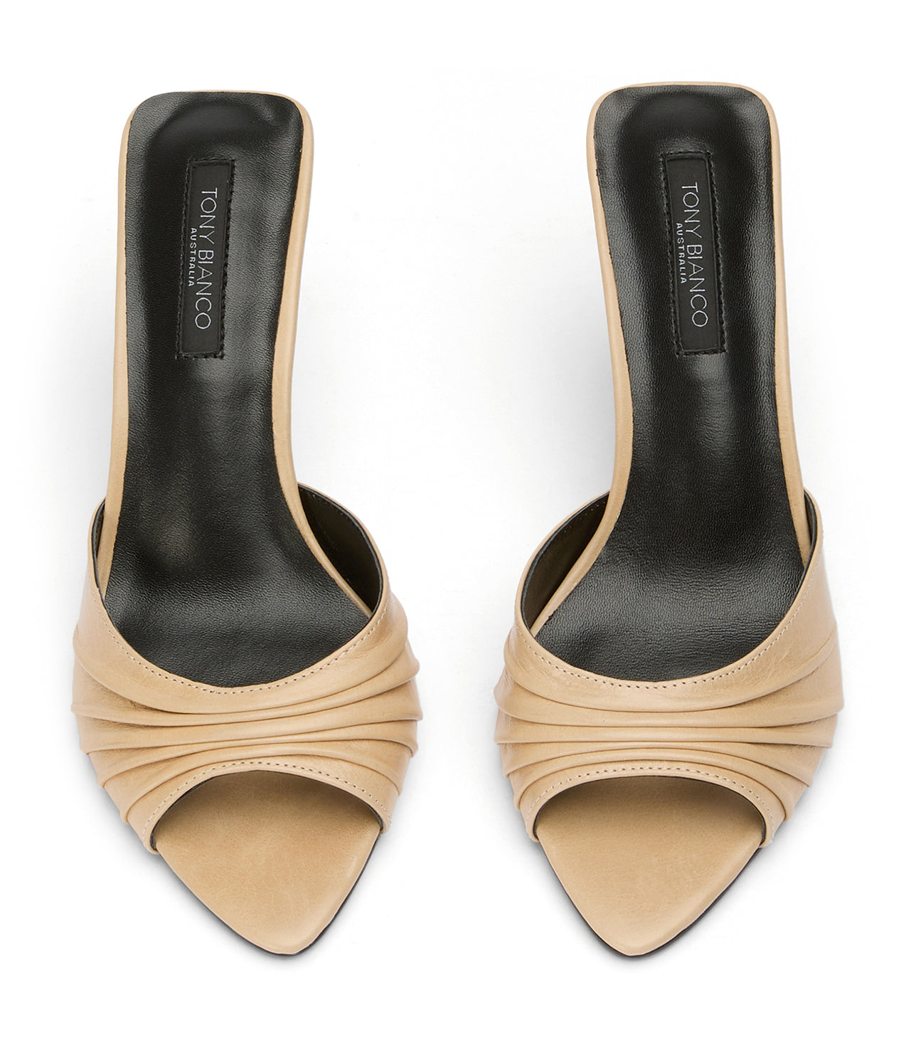 Your new statement vanilla leather heel is here. Embodying effortless femininity, the Hype mule is a stylish wardrobe essential, boasting a flattering pinched ruched upper and set upon a sleek, comfortable 7.5cm heel. Slip them on for instant polish that takes you seamlessly from sophisticated daywear to after-hours events.