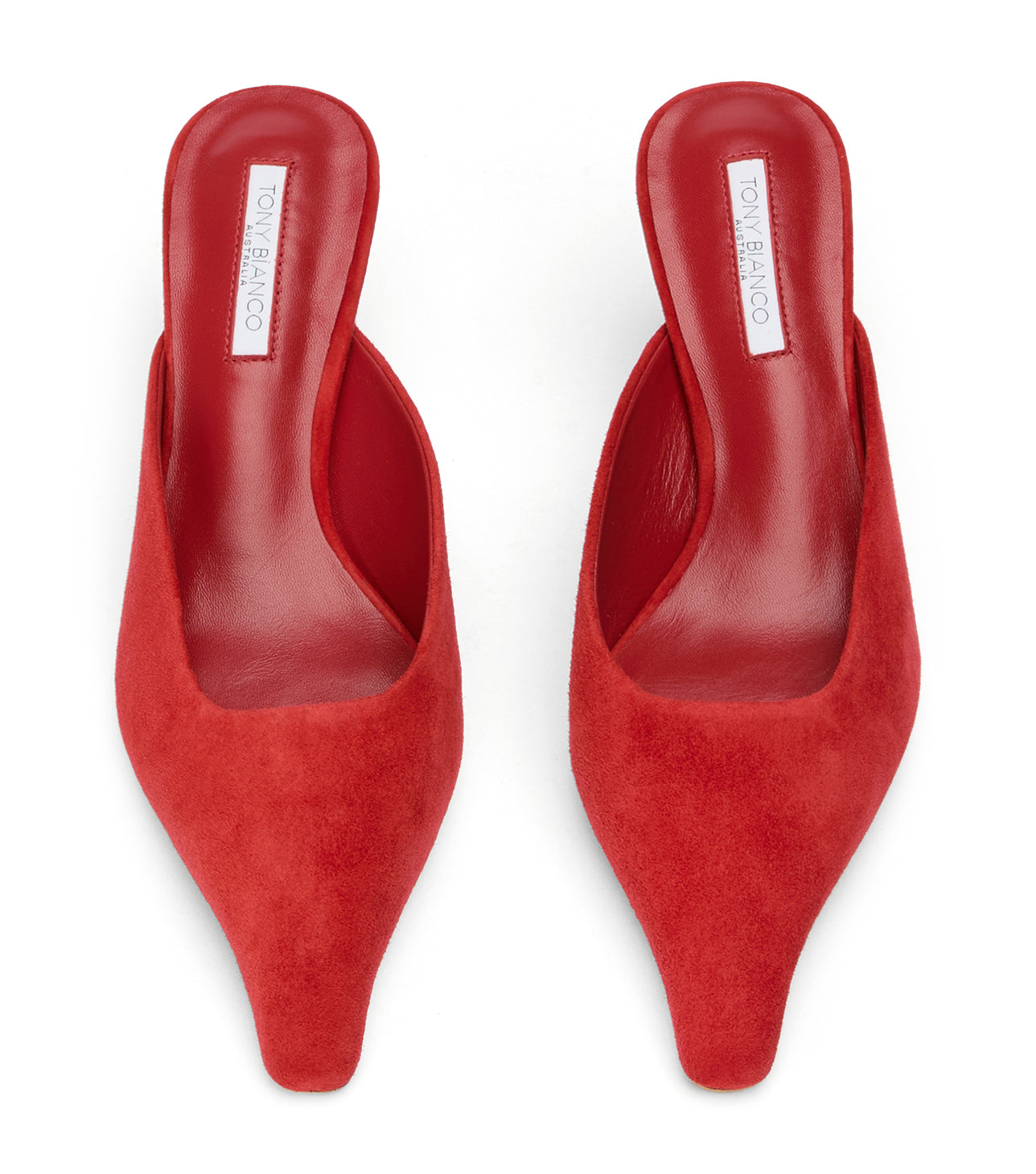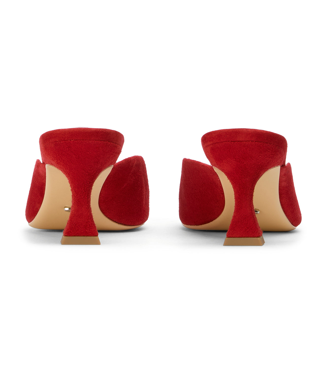 Unlock effortless sophistication with Juniper, a striking pointed-toe mule that prioritises texture and form. This standout slip-on is defined by its suede leather, featuring a matte finish that brings a soft edge to a classic silhouette. Balanced on a sculptural flared heel, this mule serves as the essential women’s red mule heel for those who demand a blend of modern artistry and everyday ease.