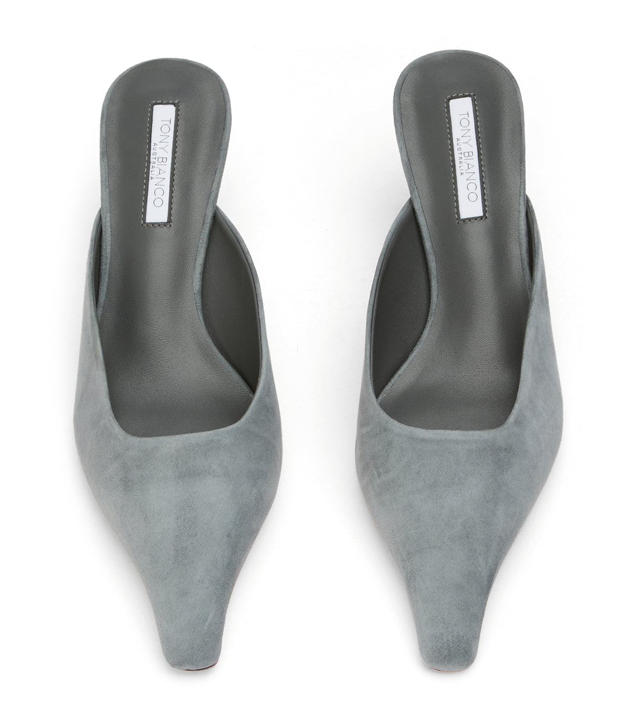 Unlock effortless sophistication with Juniper, a striking pointed-toe mule that prioritises texture and form. This standout slip-on is defined by its suede leather, featuring a matte finish that brings a soft edge to a classic silhouette. Balanced on a sculptural flared heel, this mule serves as the essential women’s steel mule heel for those who demand a blend of modern artistry and everyday ease.