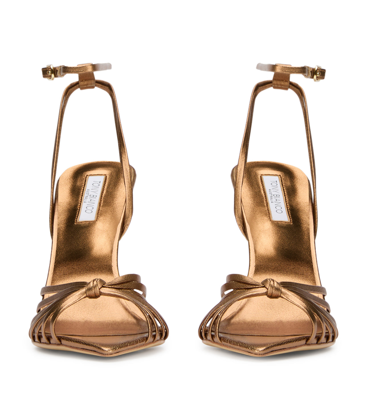 Meet Maxos, a sleek stiletto with an open pointed toe, slender cross-over straps and an adjustable ankle buckle. You'll find that this heel pairs perfectly with jeans or adds just the right amount of detail for your next event.
