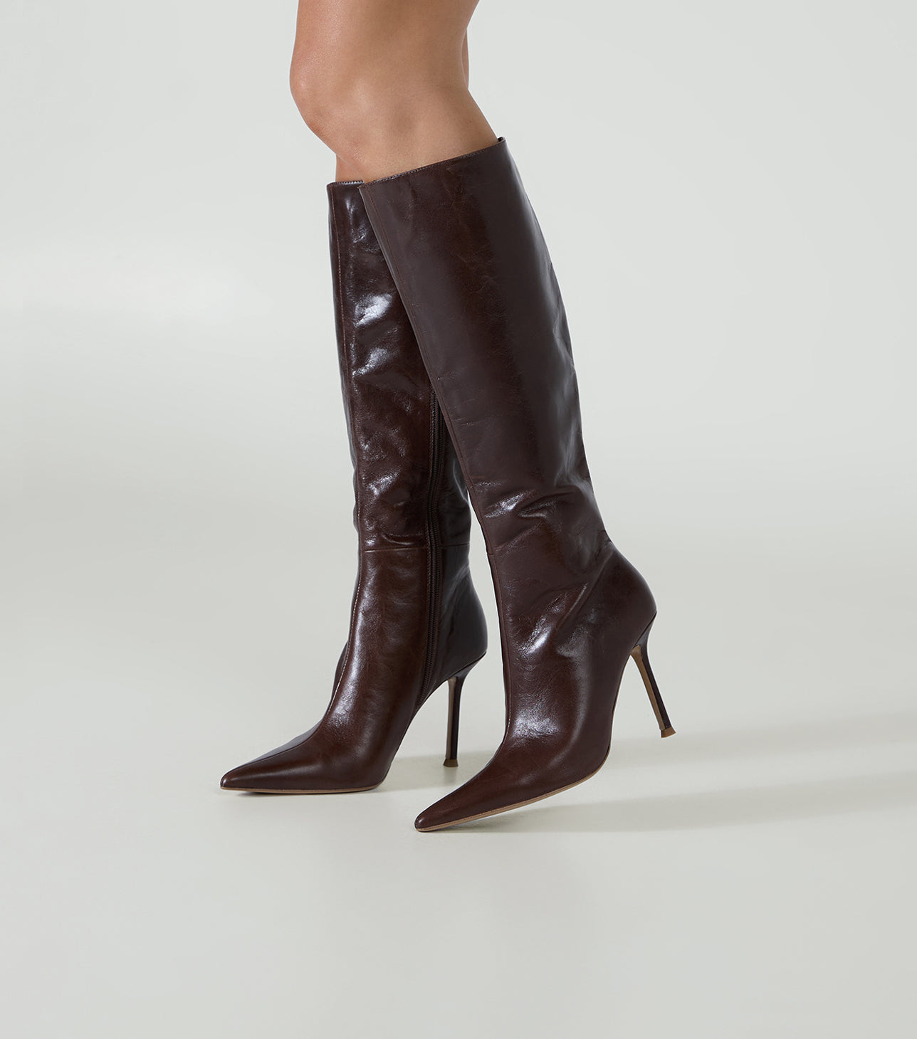 With a pointed toe, stiletto heel, and convenient inner zipper, the Naxos calf boot delivers bold sophistication and style, perfect for powering through the day or night in confidence.