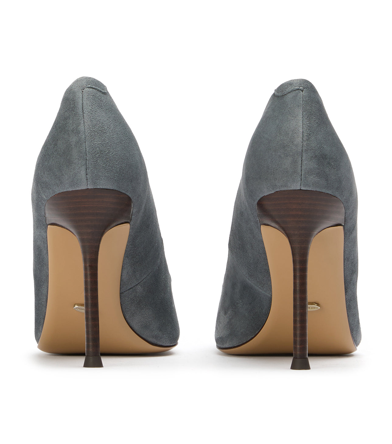 Elevate any outfit with Niki, our versatile grey suede leather heels with a twist. With their streamlined silhouette and sophisticated stiletto heel, these pumps are a must-have for every occasion and every shoe-drobe.