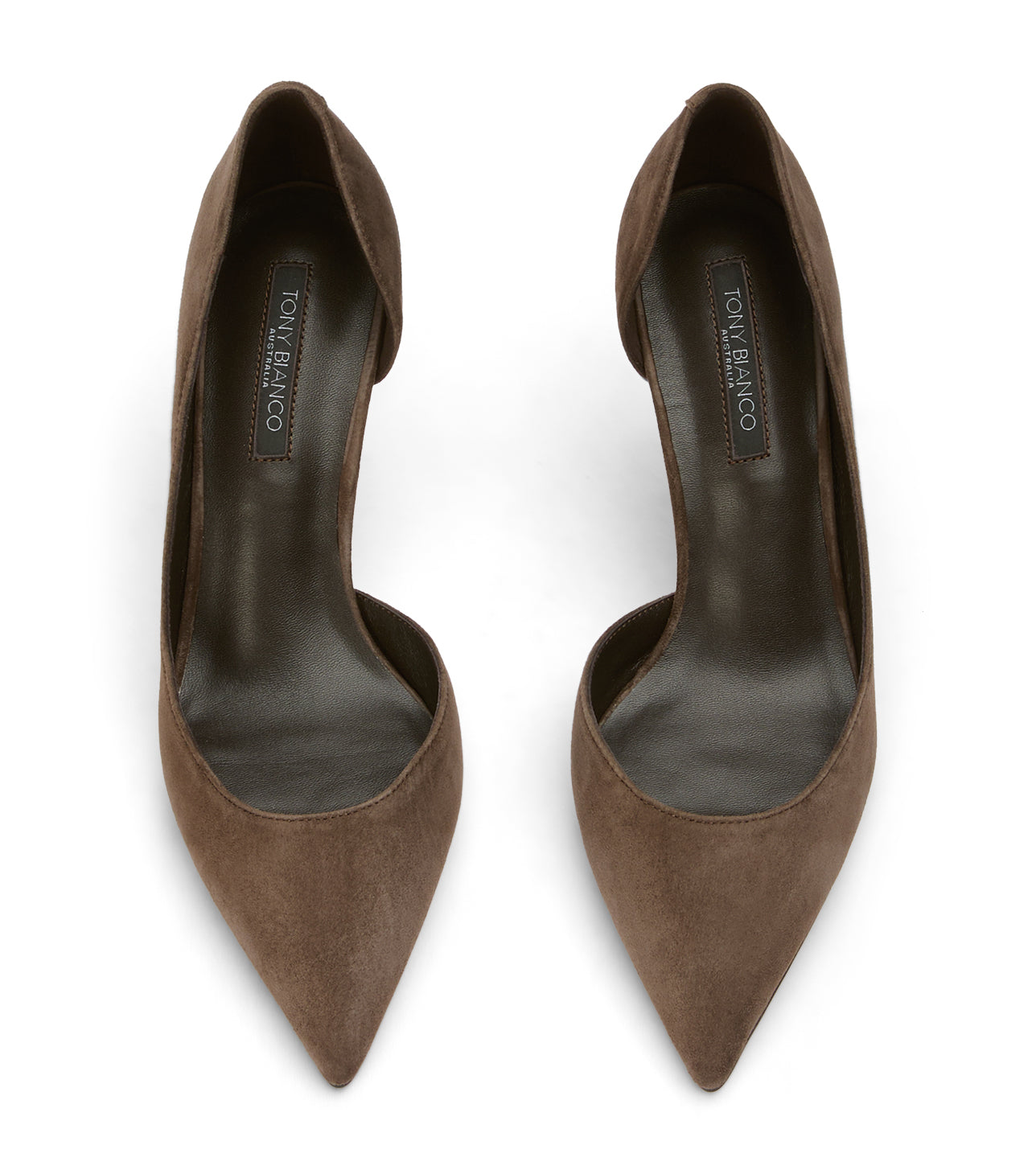 Exude effortless charm with Paris, a refined pointed-toe pump featuring a side cutout that celebrates a minimalist, open-arch silhouette. This elegant design features a soft brown suede finish, offering a velvety texture that provides a luxurious feel to any ensemble. Perfectly balanced on a slender heel, Paris is the essential women’s evening pump for a sophisticated, high-fashion look that transitions seamlessly from day to dusk.