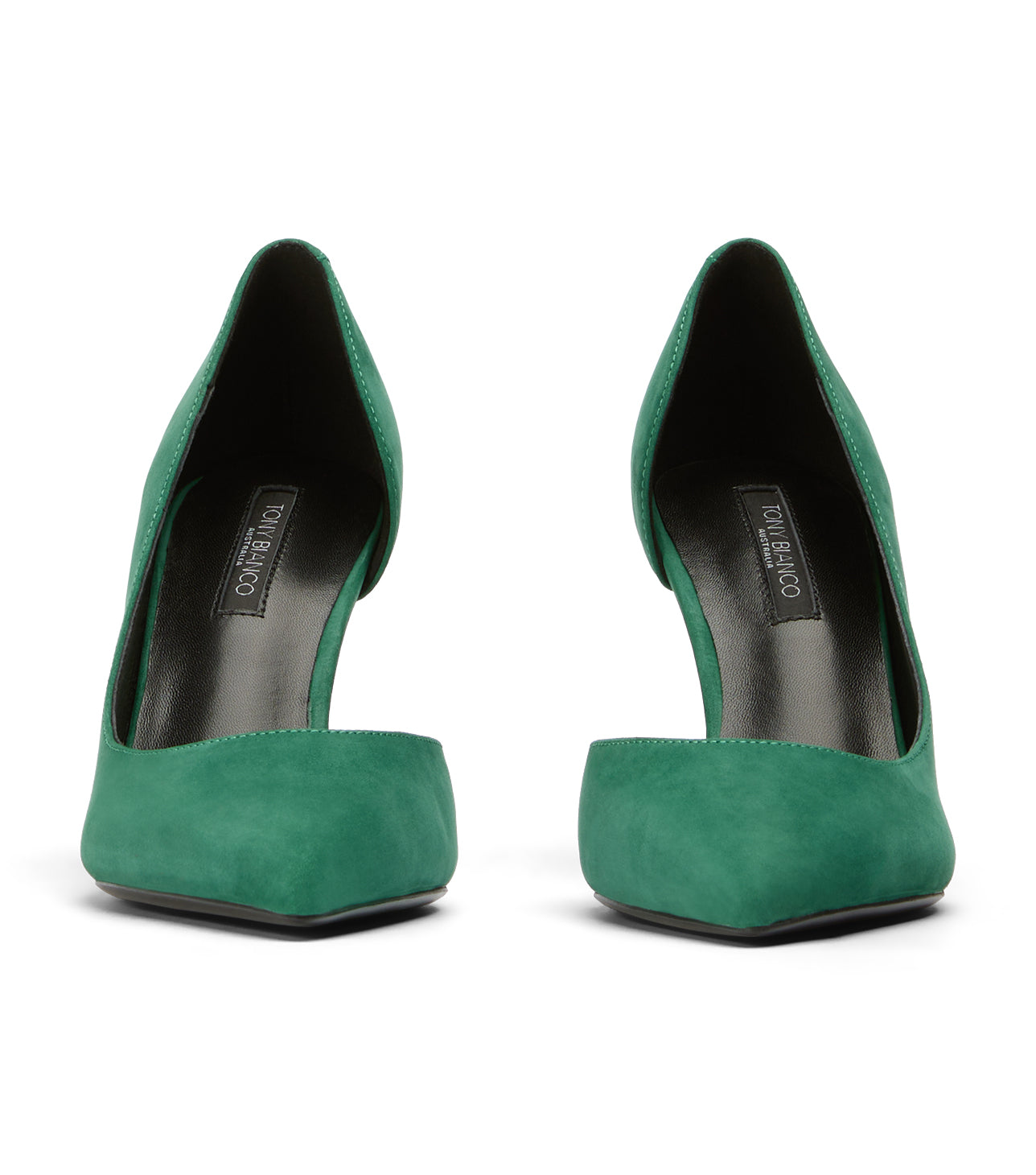 Exude effortless charm with Paris, a refined pointed-toe pump featuring a side cutout that celebrates a minimalist, open-arch silhouette. This elegant design features a soft green suede finish, offering a velvety texture that provides a luxurious feel to any ensemble. Perfectly balanced on a slender heel, Paris is the essential women’s evening pump for a sophisticated, high-fashion look that transitions seamlessly from day to dusk.