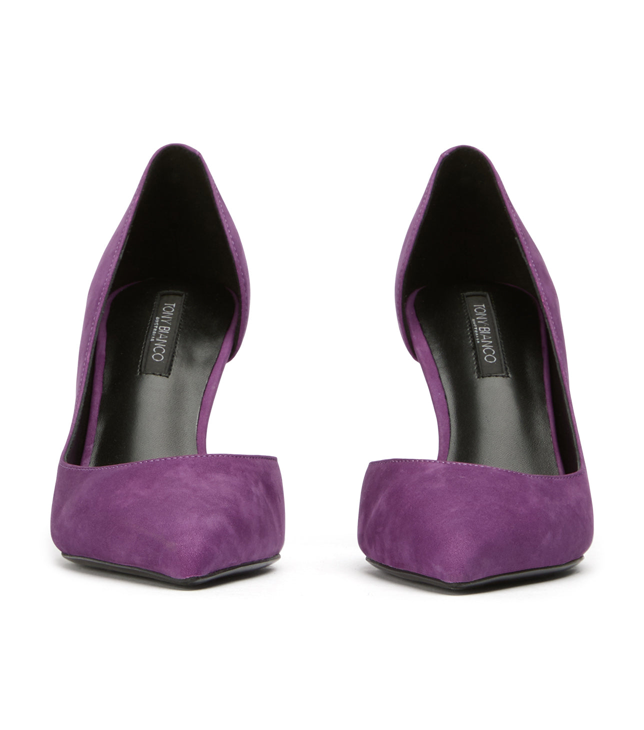 Exude effortless charm with Paris, a refined pointed-toe pump featuring a side cutout that celebrates a minimalist, open-arch silhouette. This elegant design features a purple finish, offering a velvety texture that provides a luxurious feel to any ensemble. Perfectly balanced on a slender heel, Paris is the essential women’s evening pump for a sophisticated, high-fashion look that transitions seamlessly from day to dusk.