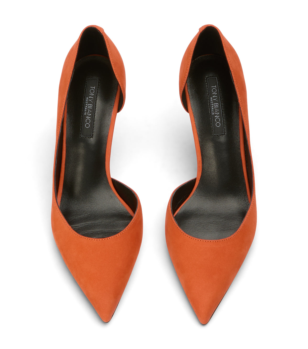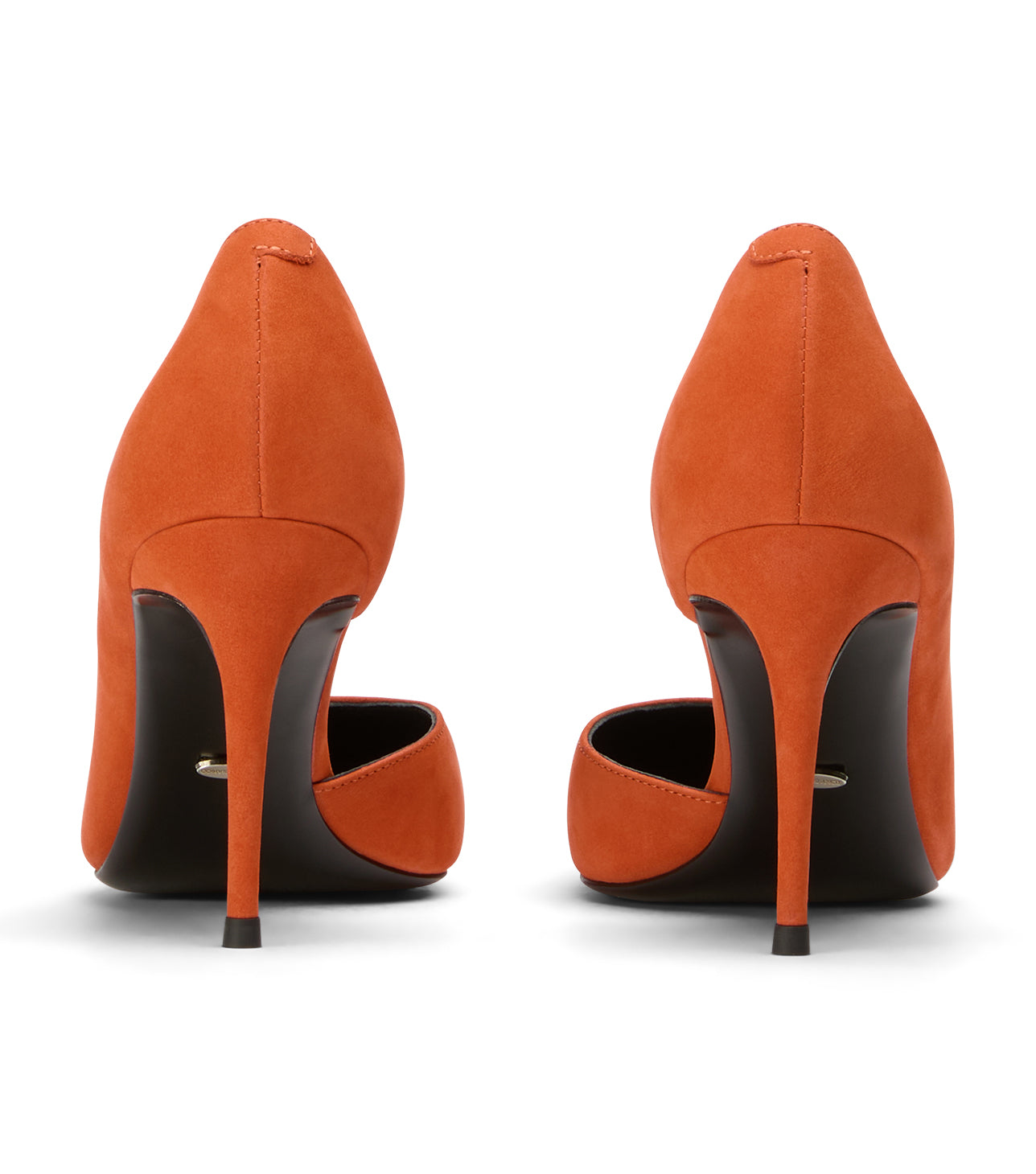 Exude effortless charm with Paris, a refined pointed-toe pump featuring a side cutout that celebrates a minimalist, open-arch silhouette. This elegant design features an orange finish, offering a velvety texture that provides a luxurious feel to any ensemble. Perfectly balanced on a slender heel, Paris is the essential women’s evening pump for a sophisticated, high-fashion look that transitions seamlessly from day to dusk.