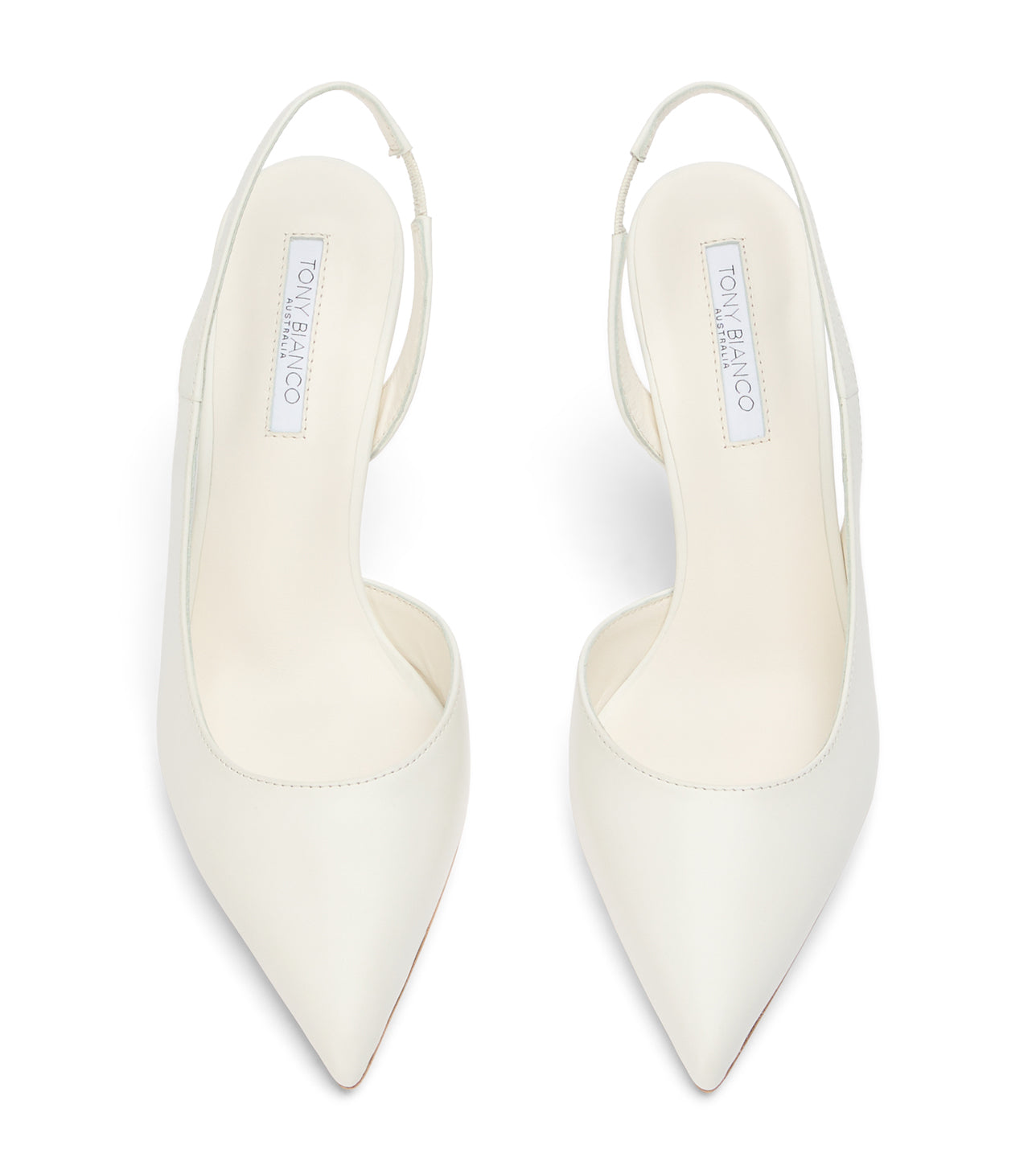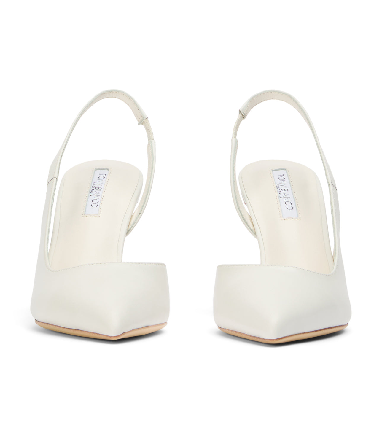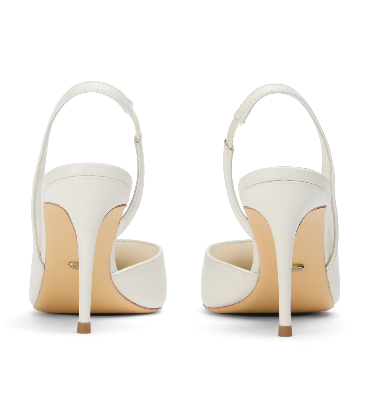 Peta is a chic white mid-height slingback stiletto heel with a sharp pointed toe and a timeless, high-fashion silhouette. Designed for effortless elegance, this heel balances comfort and style, making it ideal for evening looks and elevated everyday dressing.