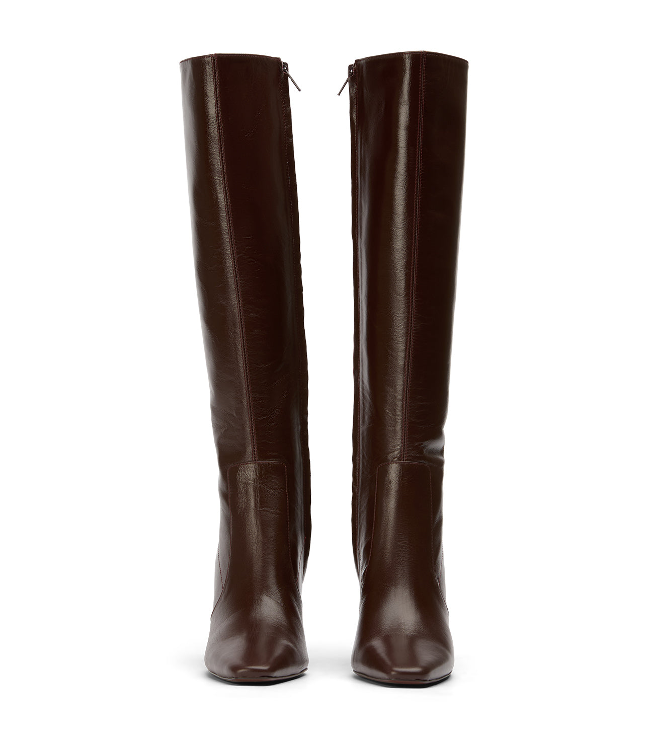 porsha is a statement deep chocolate brown knee-high boot designed with a square toe and a sculpted stiletto heel. Featuring a sleek, streamlined silhouette and a polished finish, this women’s boot delivers elevated impact for evening wear, events, and modern street styling.
