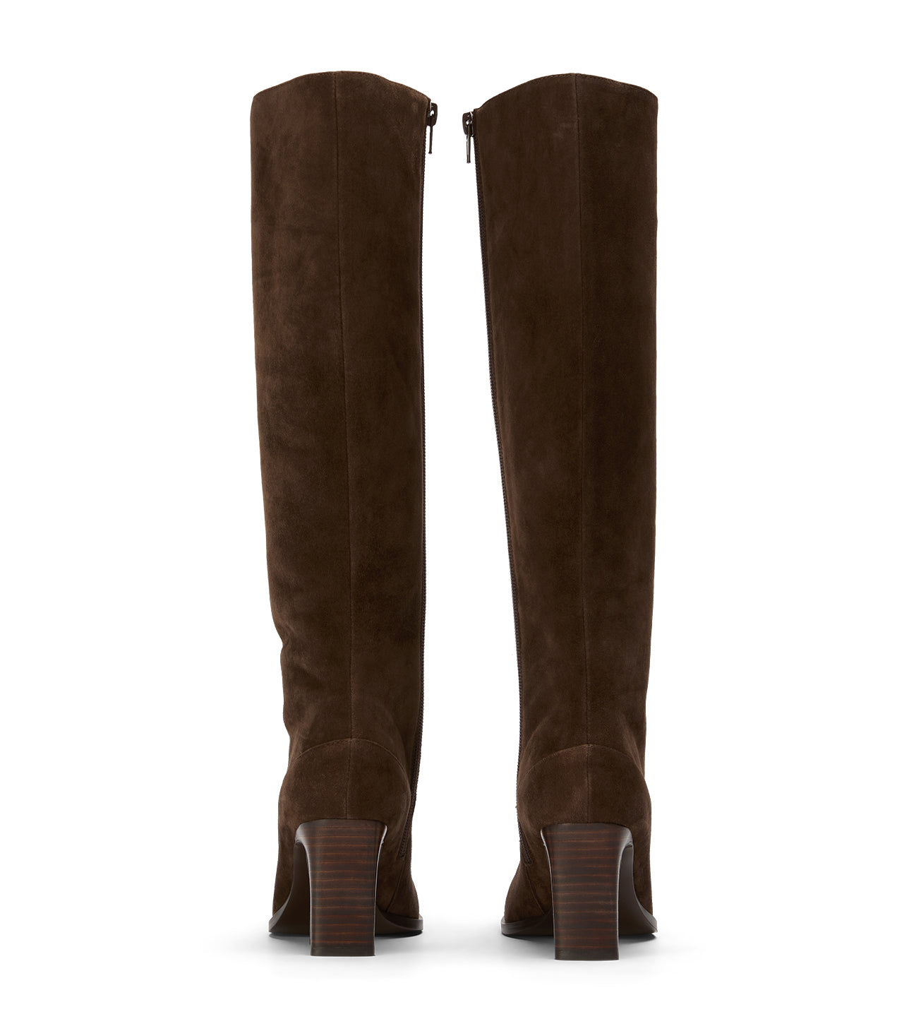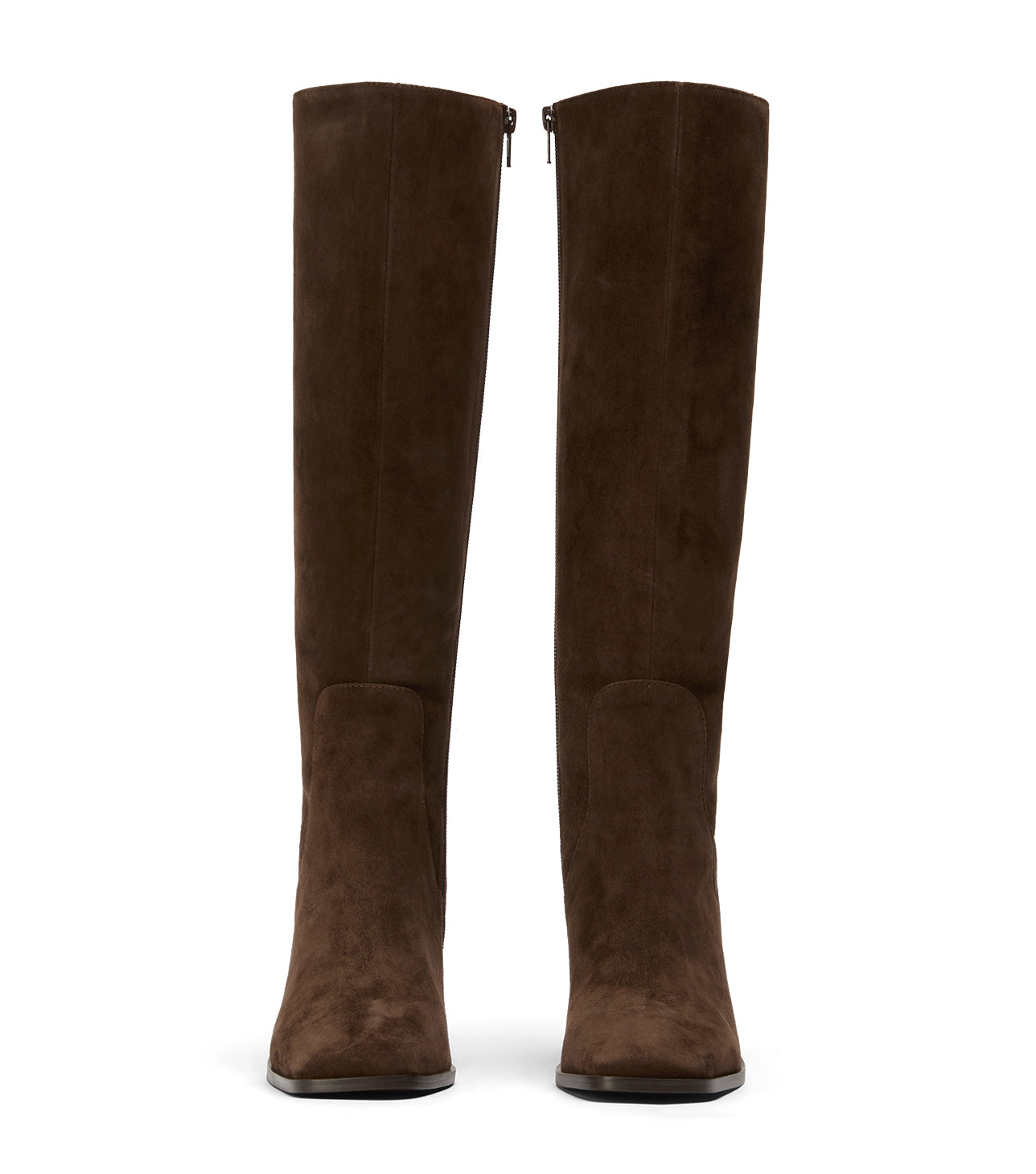 Rinetta is a modern calf-high boot crafted in soft espresso suede, designed with a sharp square toe for a refined, on-trend silhouette. Finished with a sleek mid heel, this women’s suede boot pairs effortlessly with dresses or tailored layers for elevated everyday styling.