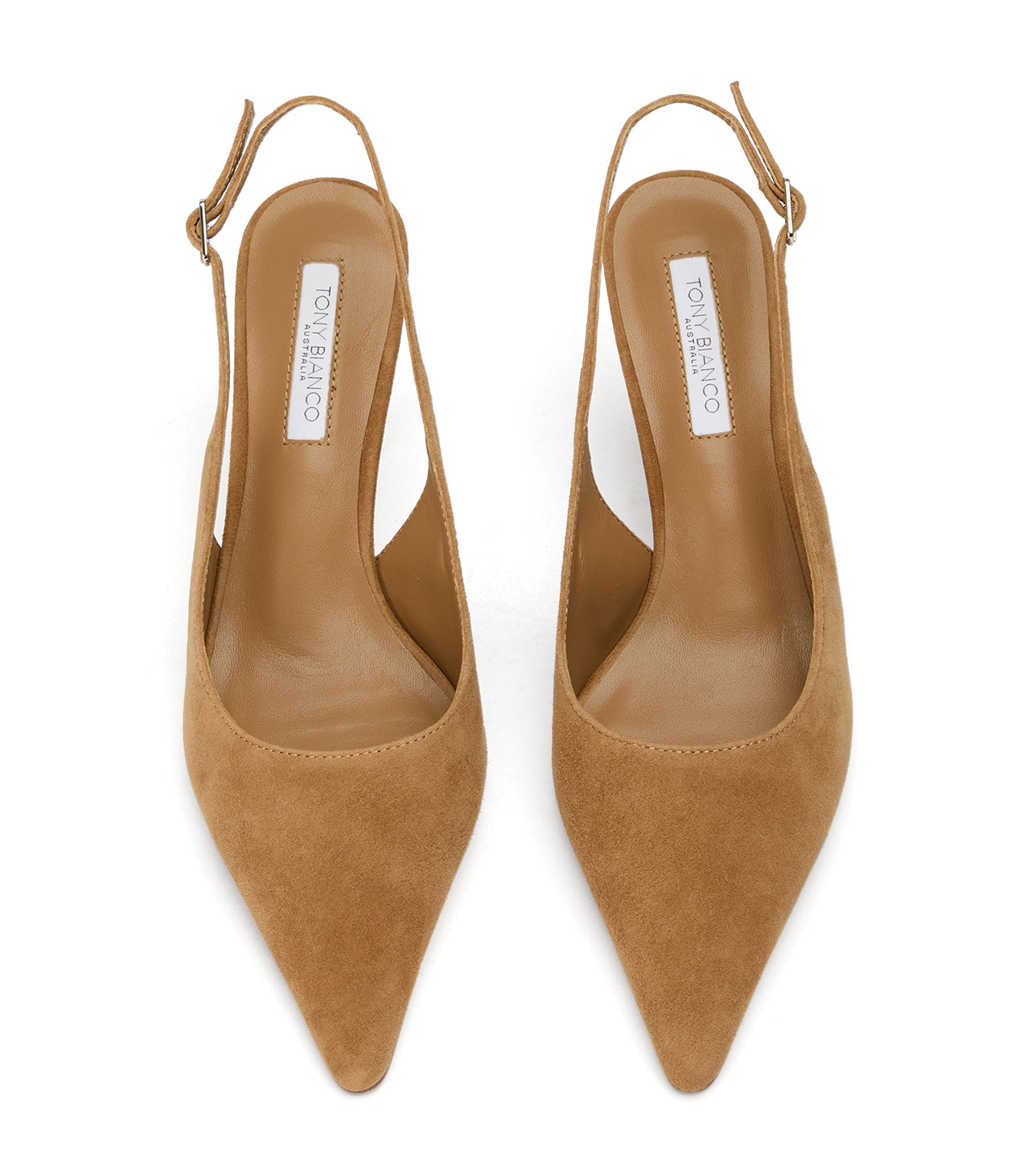 Meet Samar, the pointed-toe sling-back pump destined to be a long-standing wardrobe hero. Encapsulating chic sophistication, it features a contemporary angular heel and a clean, minimalist design. Finished in our signature suede leather, Samar offers a look that is both refined and enduringly stylish.