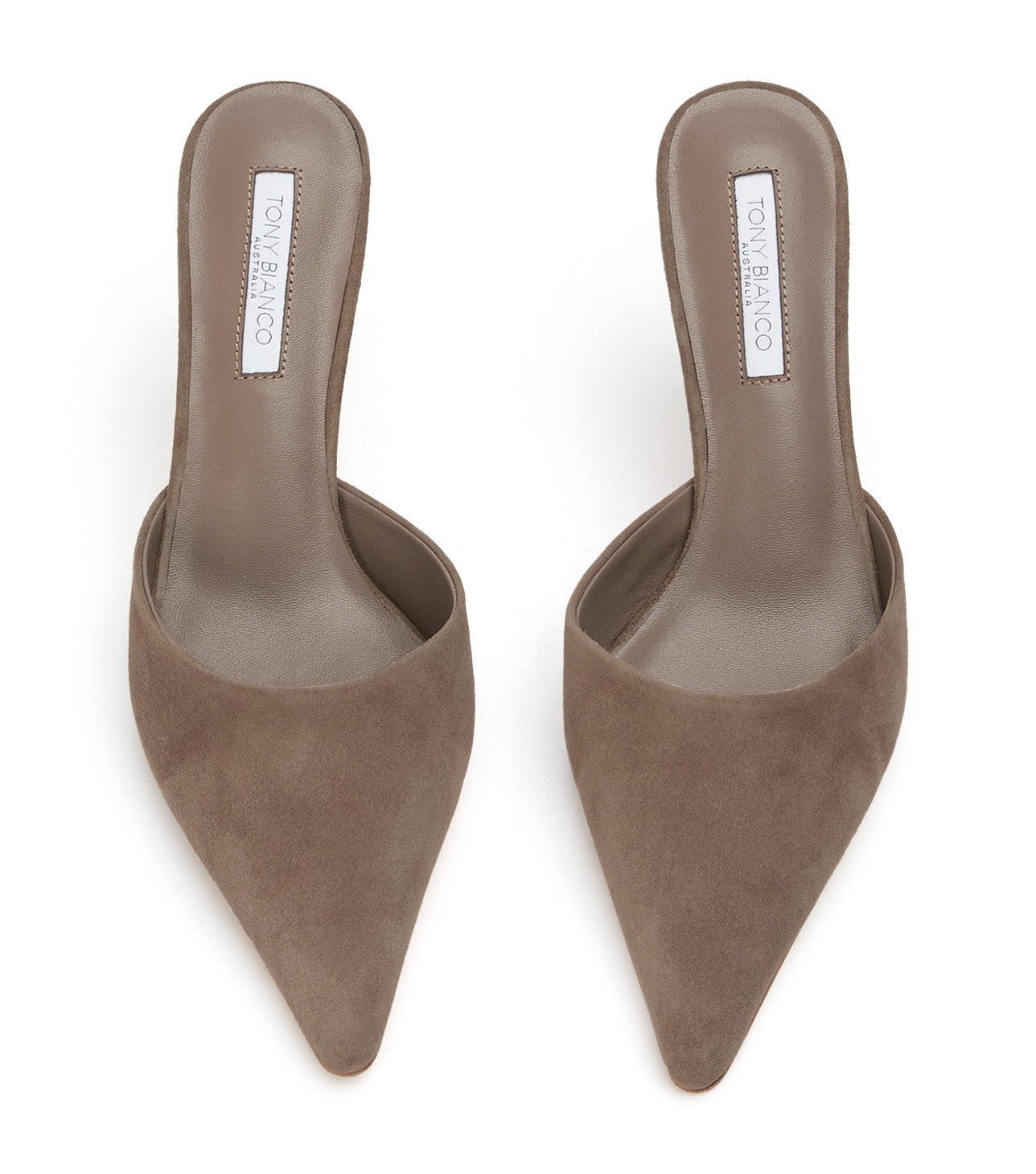 Meet Sicily, your new go-to mule for effortless elevation. This genuine suede leather design brings back 90s cool with her sharp pointed toe and open back. Finished with a chic low heel, Sicily offers modern minimalism that stands out.
