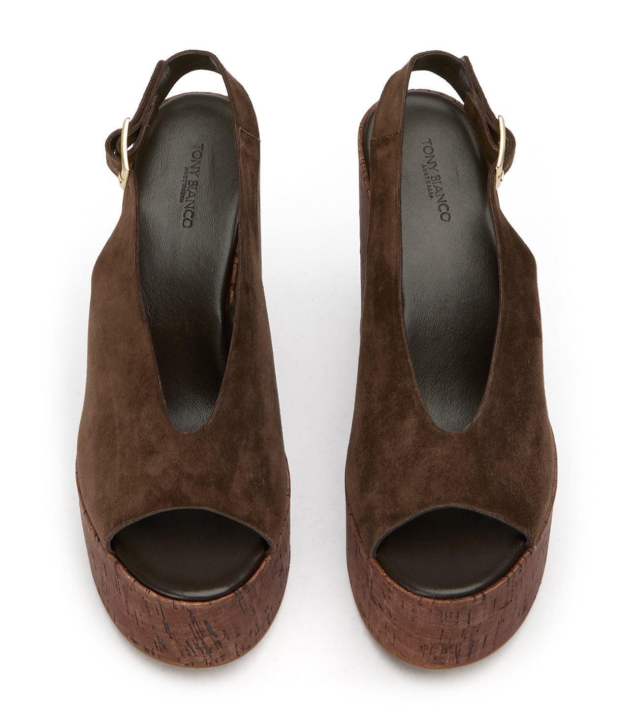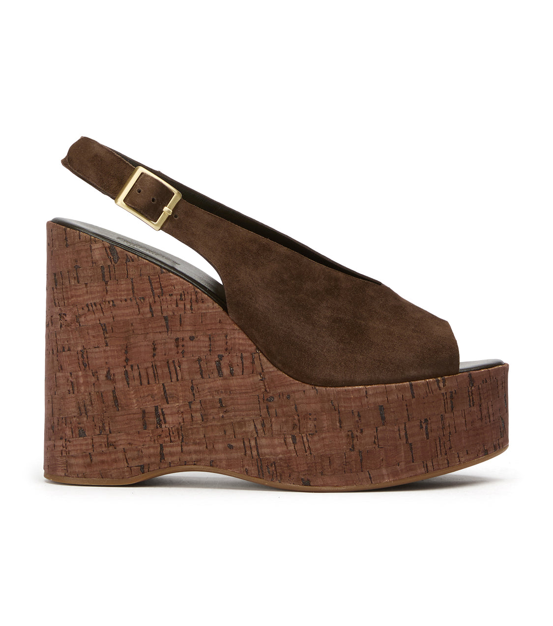 Valerie is an espresso suede wedge designed to elevate everyday dressing with effortless polish. Featuring a sculpted cork platform and adjustable slingback strap, this women’s wedge heel delivers comfort, stability, and on-trend appeal for day-to-night wear.