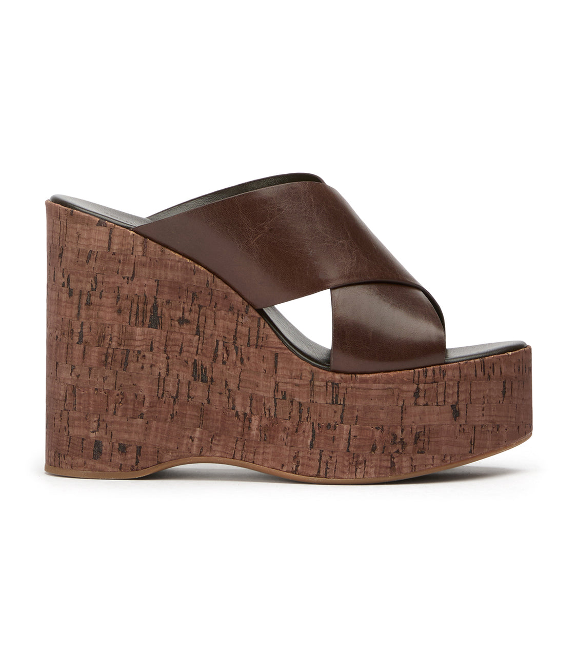 Vamore is an espresso wedge sandal designed with a bold crossover upper and statement cork platform. This women’s wedge heel blends modern minimalism with everyday comfort, making it a go-to style for elevated casual looks and warm-weather dressing.